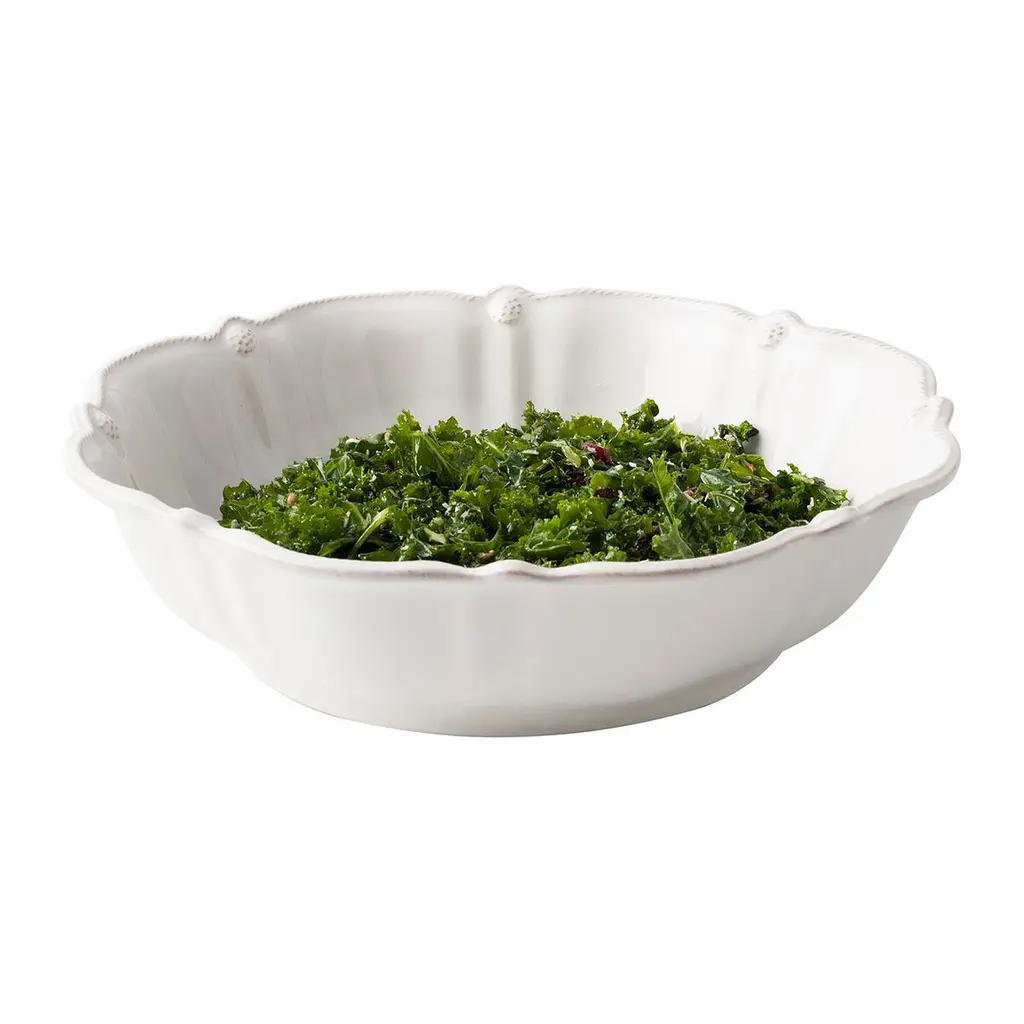 With the subtly ruffled elegance of an unfurled rose, the wide basin of this large bowl makes everything it contains look lovely, from summer salads to pixie tangerines.