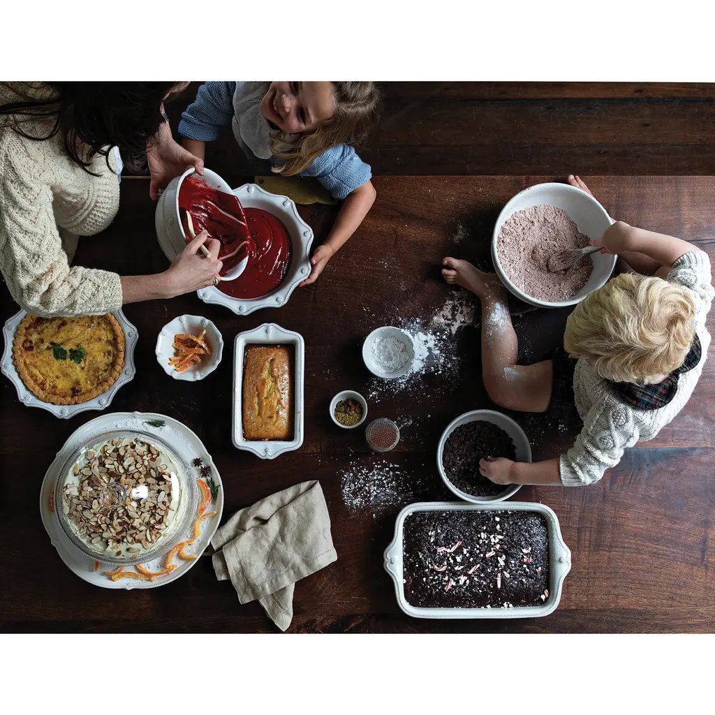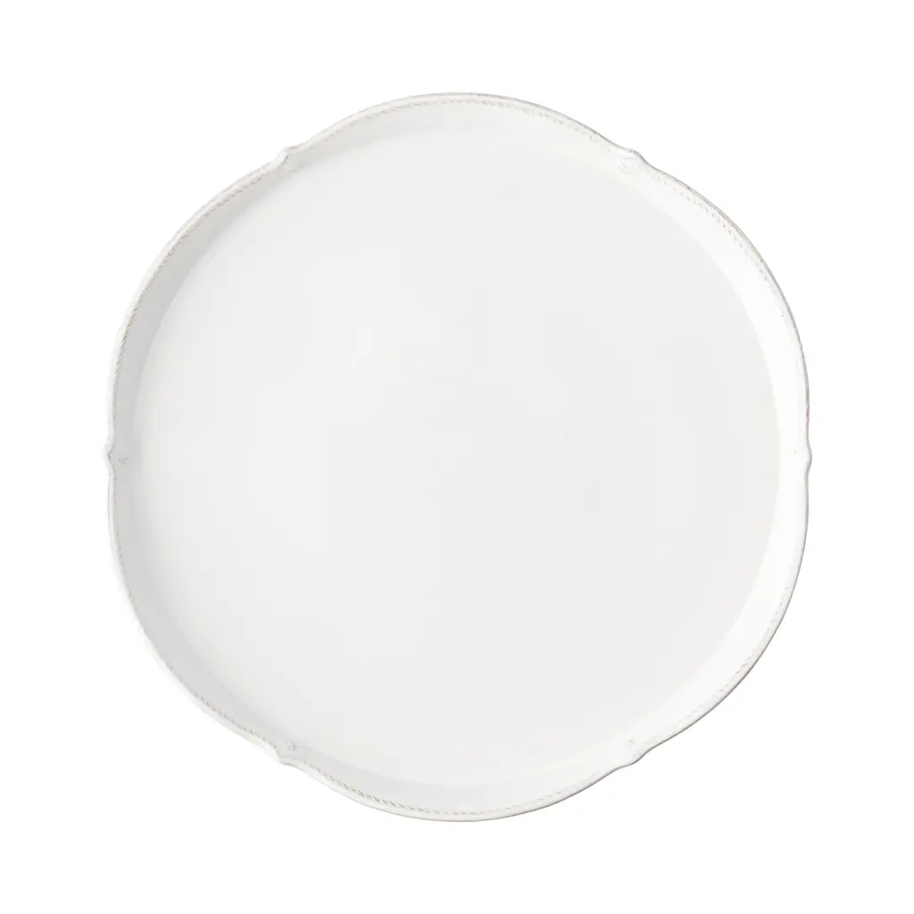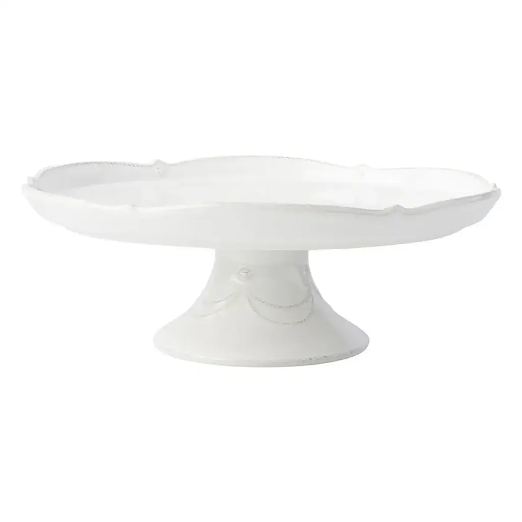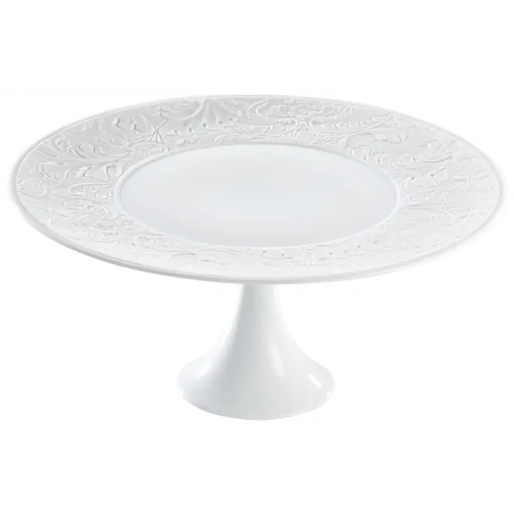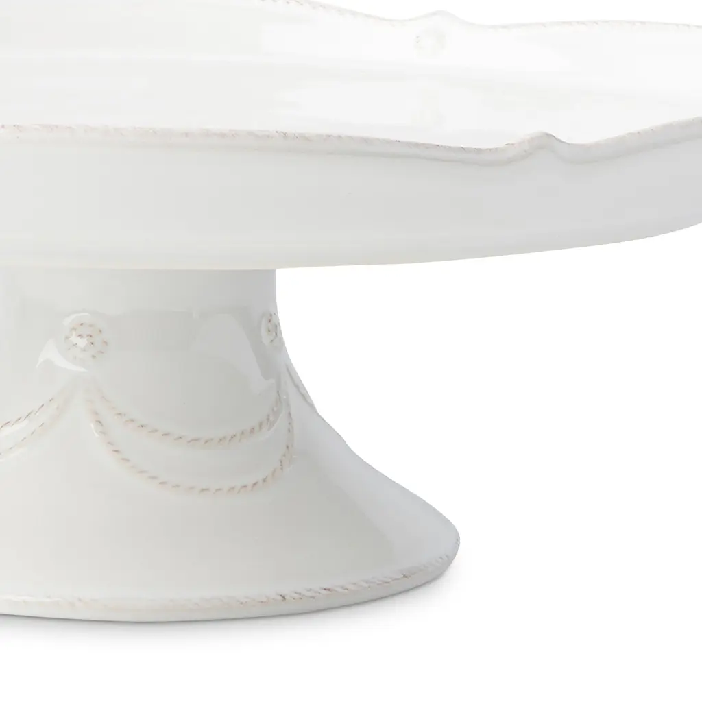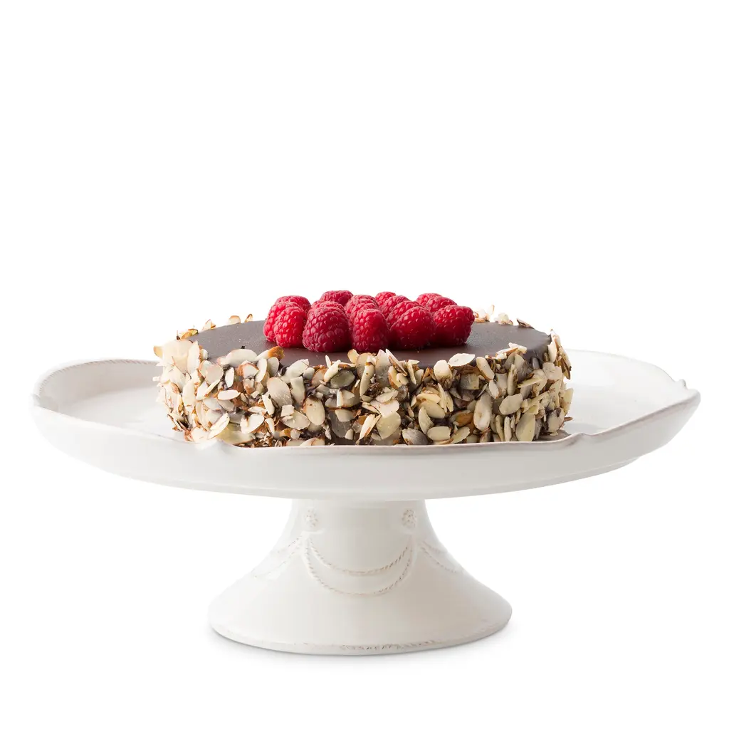 A scalloped silhouette and crisp white finish makes this cake plate a classic centerpiece for your festive tabletop.