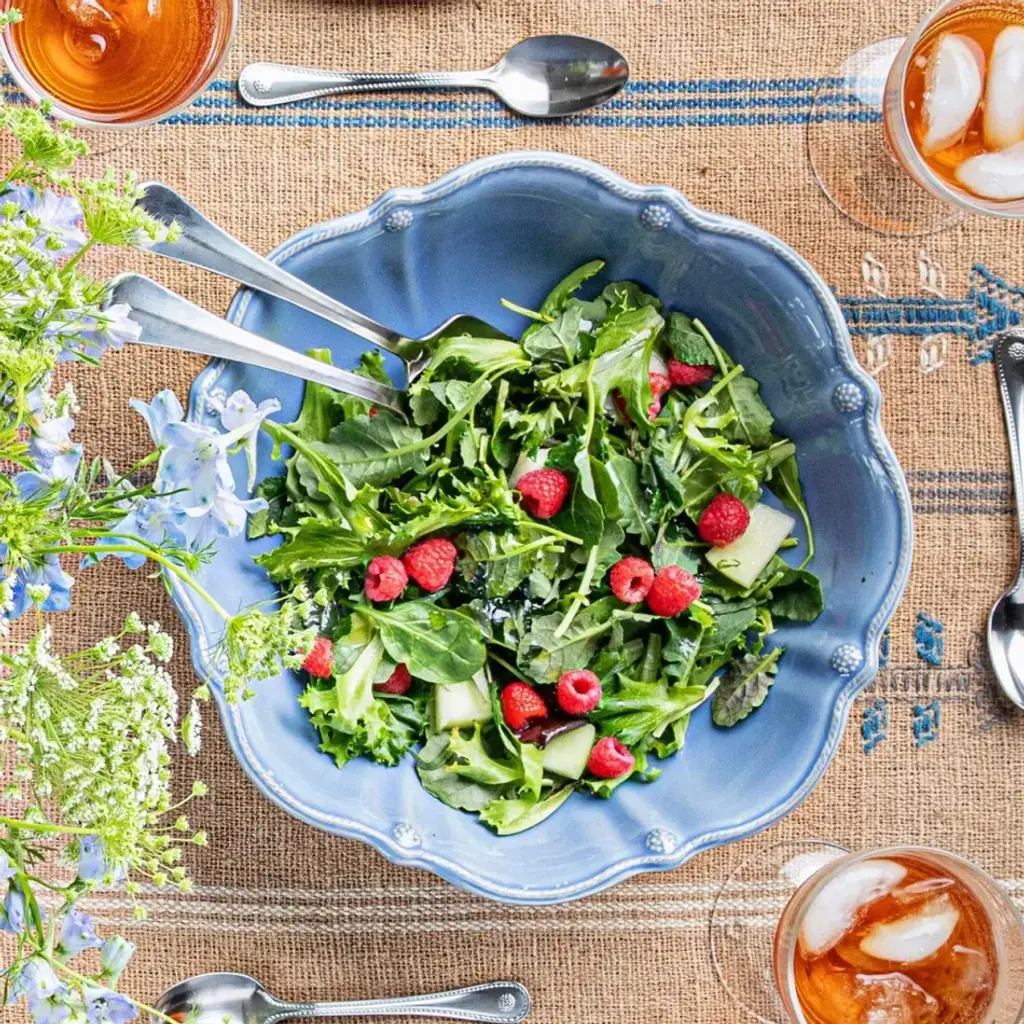 From our Berry & Thread Collection - Rimmed with a simple thread and adorned with a sprinkling of berries, this iconic dinnerware collection embraces historic motifs in a sublime blue hue. With a subtly ruffled edge, the wide basin of this 13' serving bowl is delightful for summer salads and hearty roast vegetables. Based in Connecticut, Juliska is committed to bringing elegant European design into our modern homes. Since its founding in 2001, when David and Capucine Gooding began by working with artisans outside of Prague to reproduce antique Bohemian glass pieces, every piece from Juliska has shared a rich heritage spanning six centuries of European design. Juliska's creations are timeless, romantic and effortlessly chic.