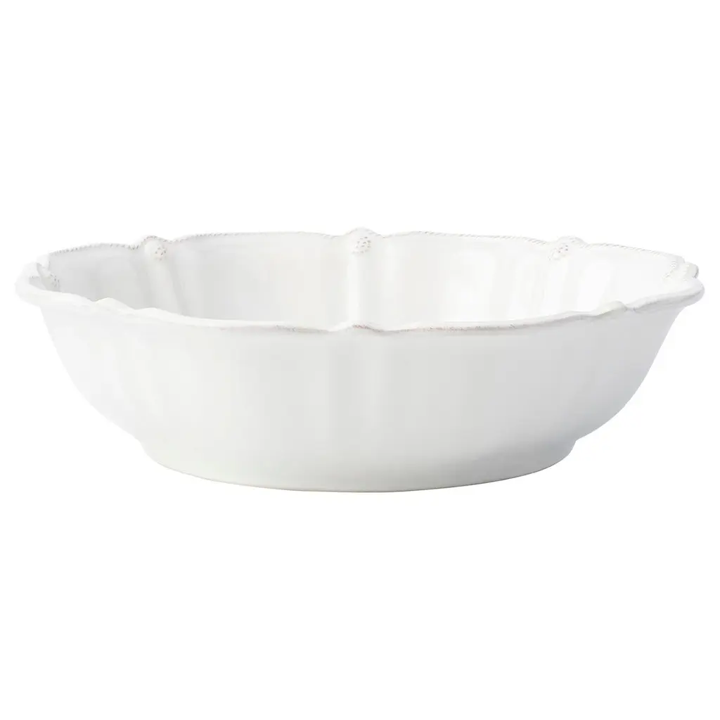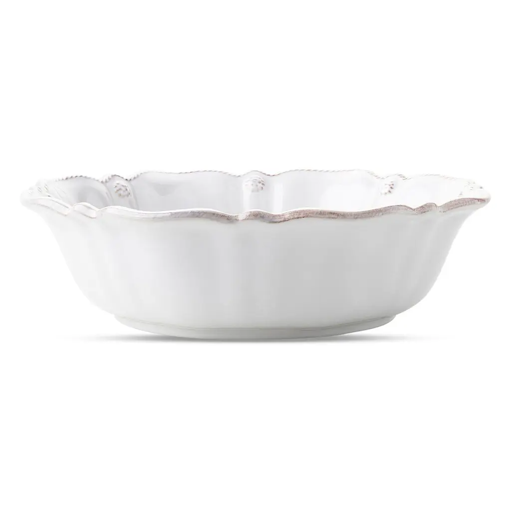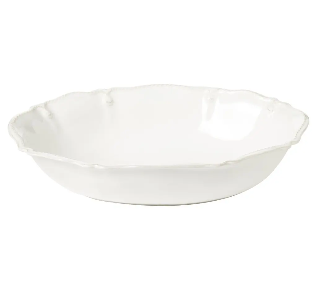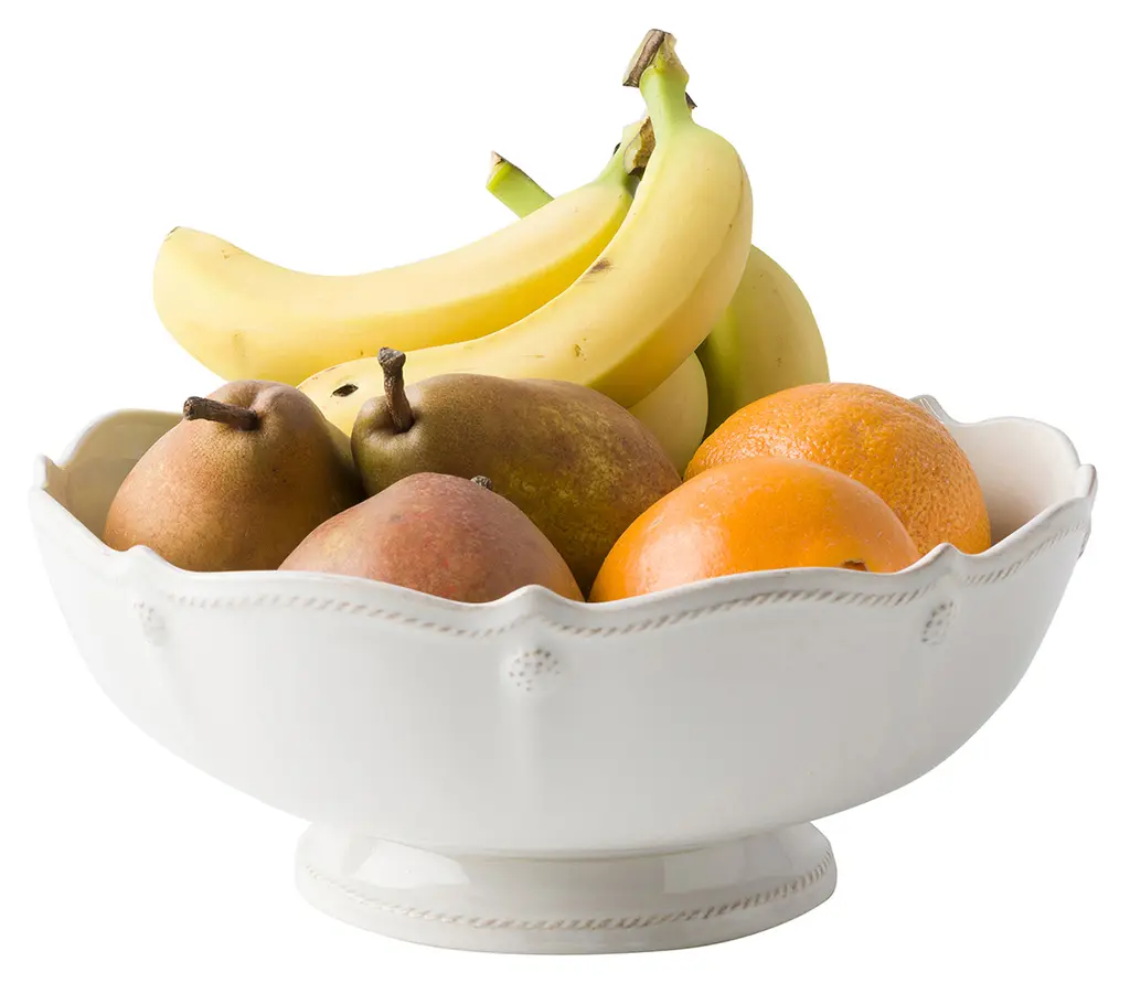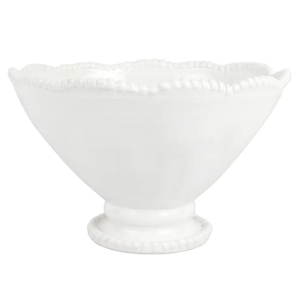 A lovely addition to any kitchen, this footed serving bowl is crafted of ceramic with a scalloped rim, textural detailing, and a versatile white finish. Made in Portugal.