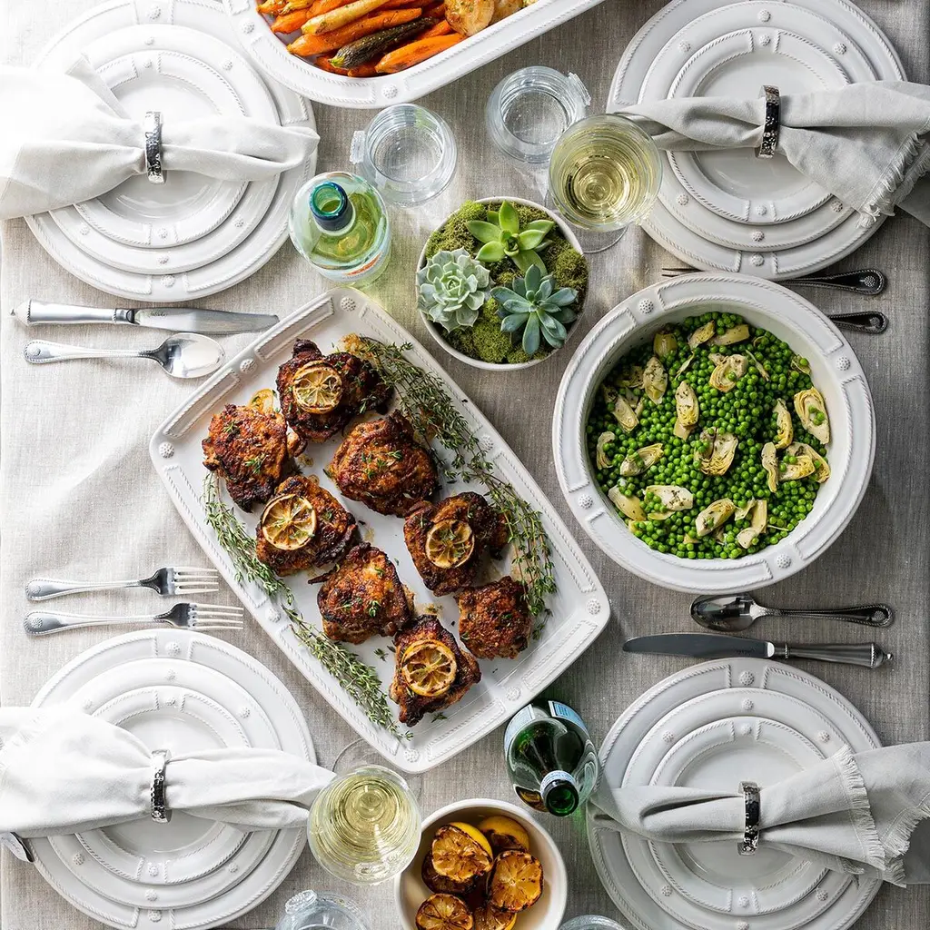 The ordered symmetry and geometric shapes from historic French Decor resonates today with timeless appeal that can easily dress up or pair down to fit every occasion - from a formal bridal luncheon in the garden to a mid-week fireside dinner for two with takeout. Bon appetit!
