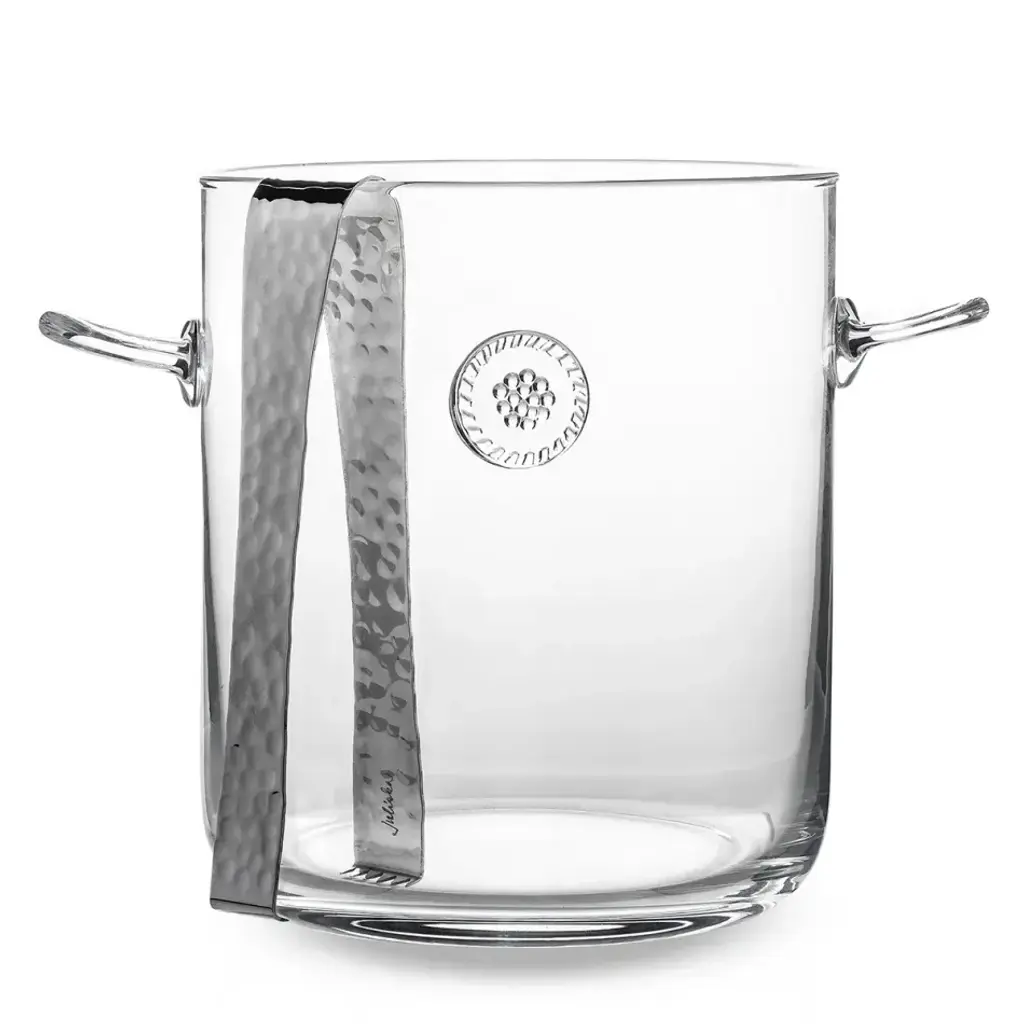 From our Berry & Thread Collection, this blown glass ice bucket with tongs is both transitional and practical to keep your bubbly or vino chilled and ready to serve. Complete with our handsome Berry & Thread medallion in the center, this piece is unmistakably classic at any function. Based in Connecticut, Juliska is committed to bringing elegant European design into our modern homes. Since its founding in 2001, when David and Capucine Gooding began by working with artisans outside of Prague to reproduce antique Bohemian glass pieces, every piece from Juliska has shared a rich heritage spanning six centuries of European design. Juliska's creations are timeless, romantic and effortlessly chic.