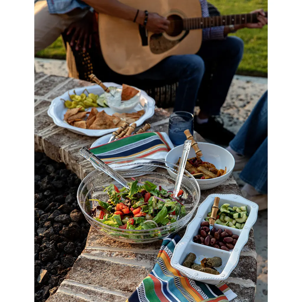 From the Berry & Thread Al Fresco Collection, this durable serving platter with a flirty scalloped edge can hold everything from deviled eggs and cheese & crackers to cookies and chocolate-covered strawberries, all thanks to its both shape and 17" diameter.