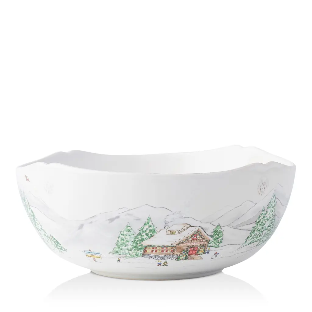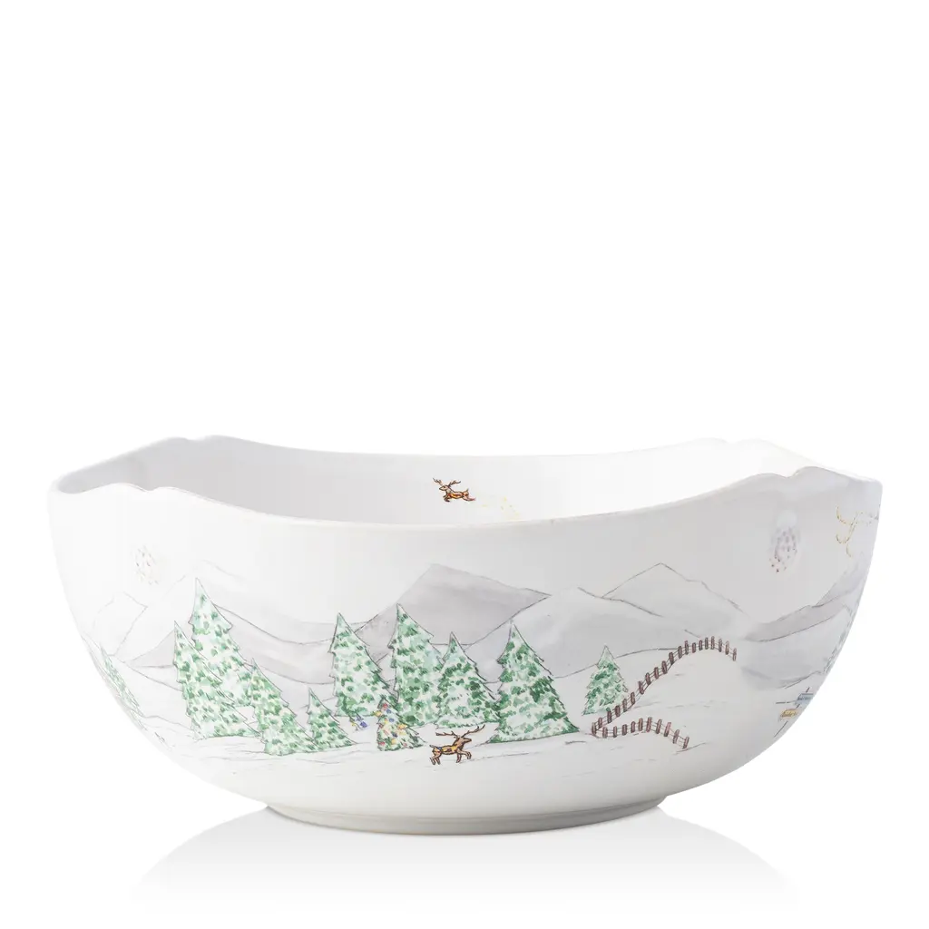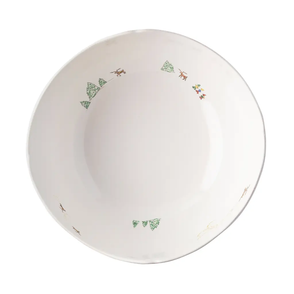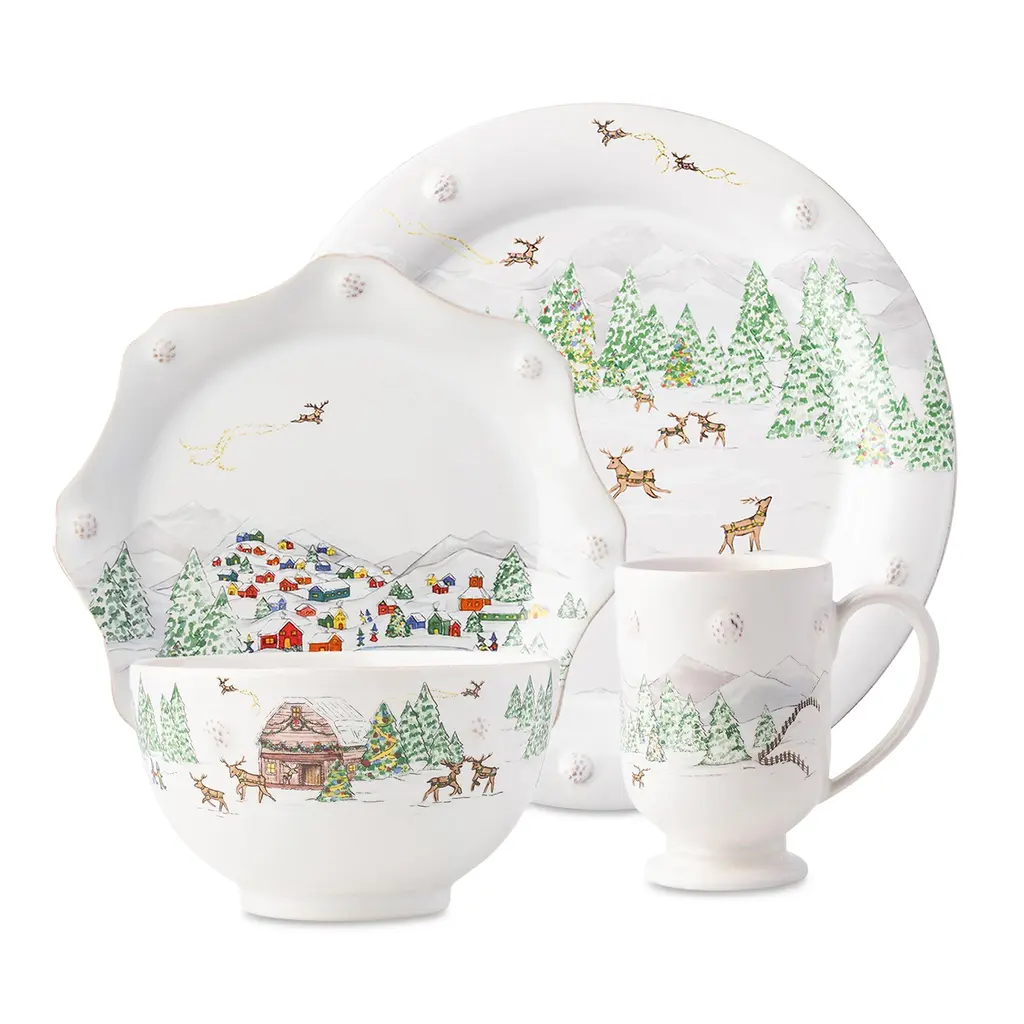 The mythical, folkloric world of the North Pole is hand illustrated atop iconic Berry & Thread shapes in this new holiday collection. Find the elves' village and Santa's cottage depicted on this serving bowl with subtle scallop and berry detail along its edge.