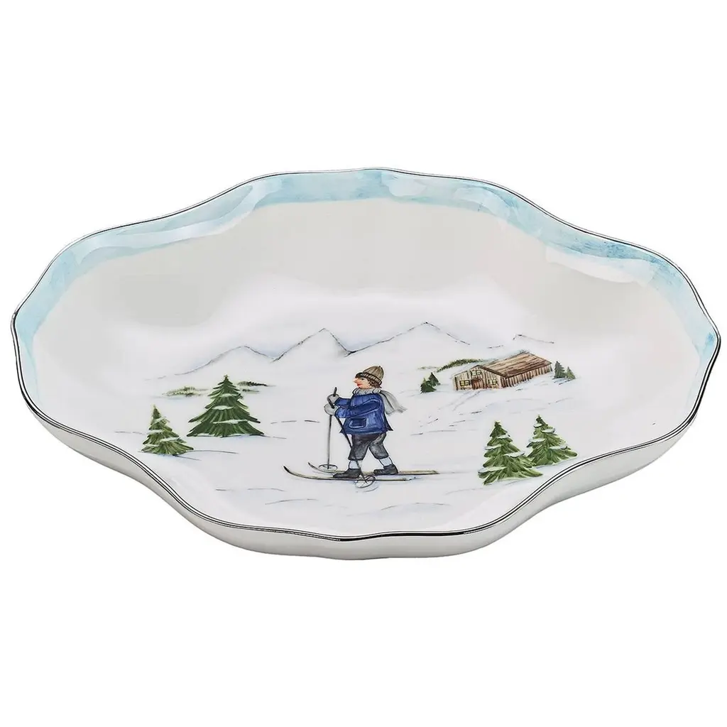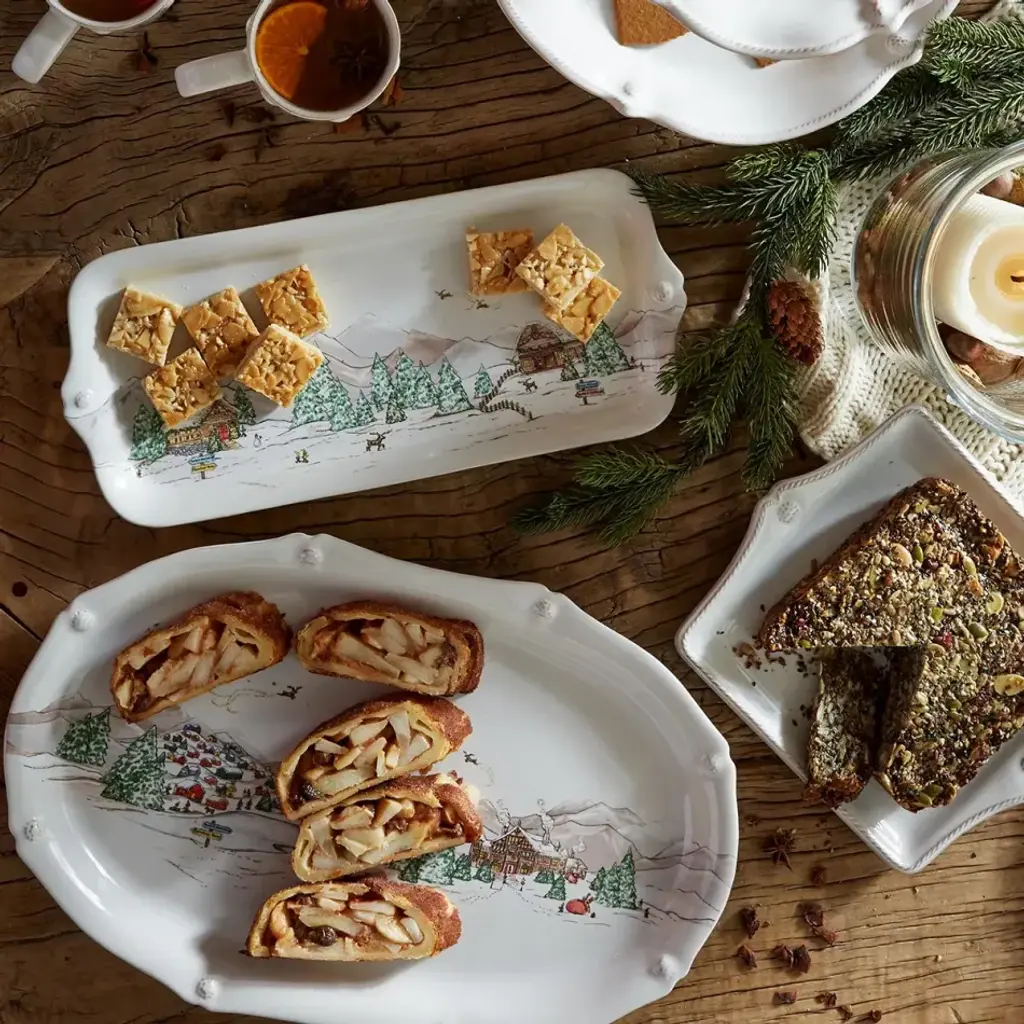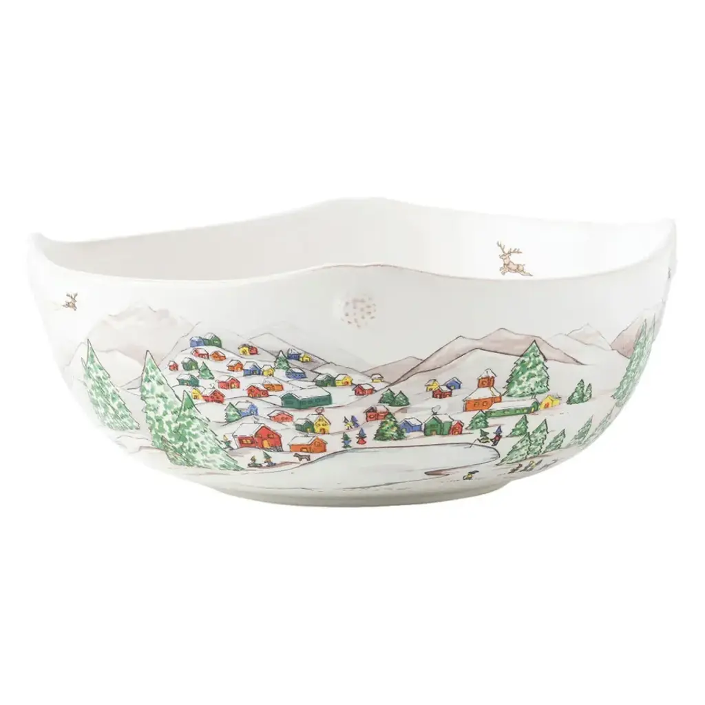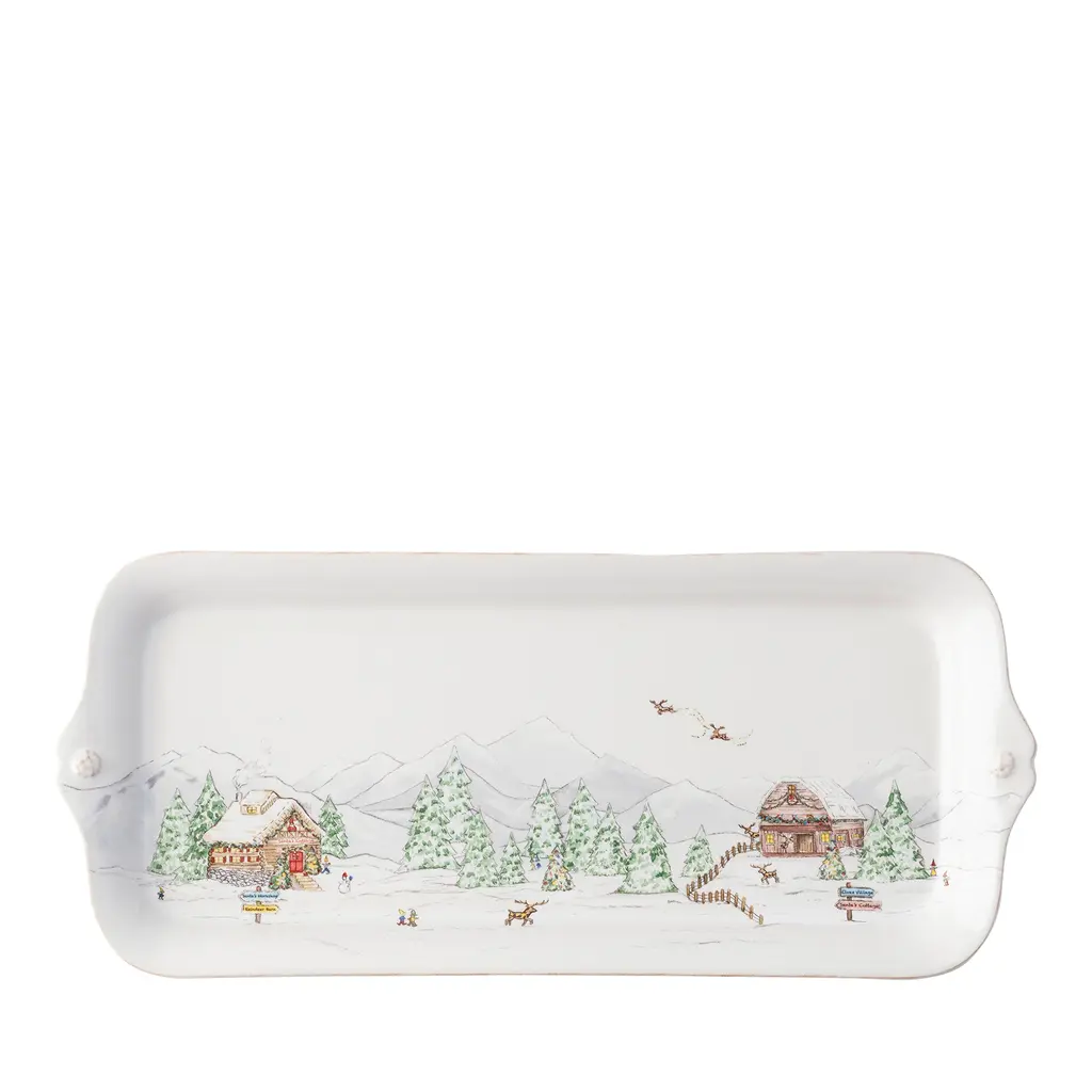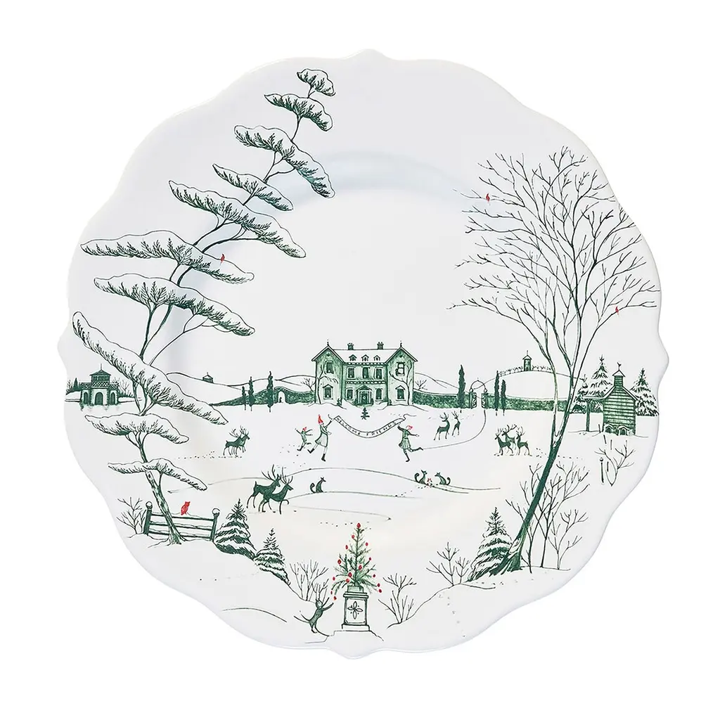 The mythical, folkloric world of the North Pole is hand illustrated atop iconic Berry & Thread shapes in this new holiday collection. Find the elves’ village and toy workshop depicted on this generously sized 17” platter with subtly scalloped rim. Based in Connecticut, Juliska is committed to bringing elegant European design into our modern homes. Since its founding in 2001, when David and Capucine Gooding began by working with artisans outside of Prague to reproduce antique Bohemian glass pieces, every piece from Juliska has shared a rich heritage spanning six centuries of European design. Juliska's creations are timeless, romantic and effortlessly chic.