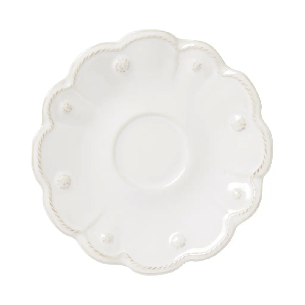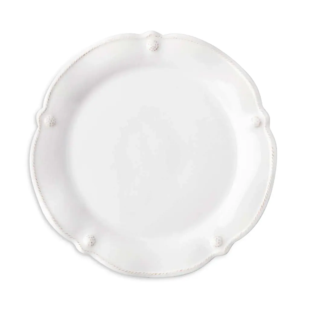 From Juliska’s Berry & Thread Collection - Rimmed with a simple thread and adorned with a sprinkling of berries, this iconic dinnerware collection embraces historic motifs . Mix and match this sweetly scalloped dessert/salad plate with so many of Juliska's collections. Portuguese stoneware ceramics echo the same artisanal production as Juliska glassware. They have developed a variety of exquisite transparent, opaque, and metallic glazes on a tough Portuguese stoneware body. All are lead free and each has the same tough durability to handle the most demanding everyday use.