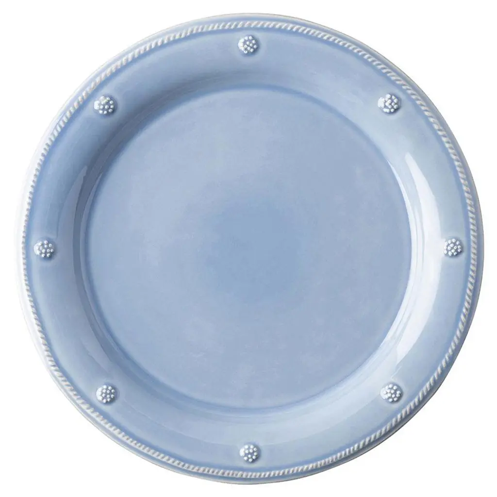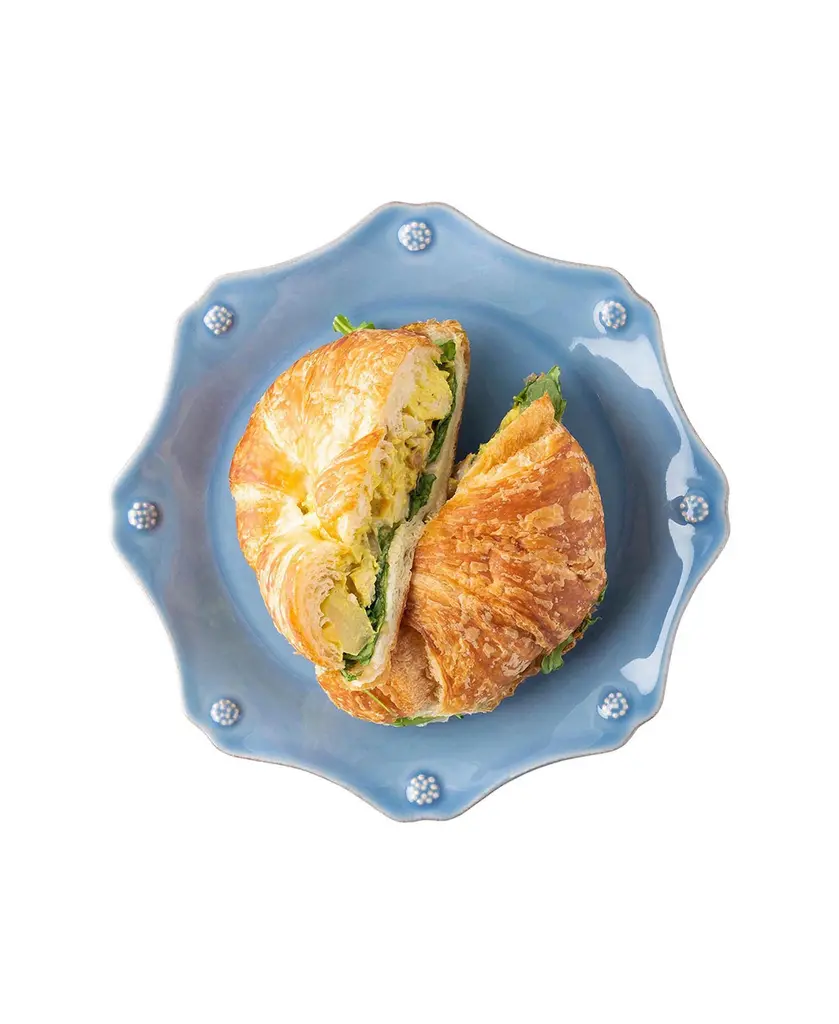 From Juliska’s Berry & Thread Collection - Rimmed with a simple thread and adorned with a sprinkling of berries, this iconic dinnerware collection embraces historic motifs . Mix and match this sweetly scalloped dessert/salad plate with so many of Juliska's collections. Portuguese stoneware ceramics echo the same artisanal production as Juliska glassware. They have developed a variety of exquisite transparent, opaque, and metallic glazes on a tough Portuguese stoneware body. All are lead free and each has the same tough durability to handle the most demanding everyday use.