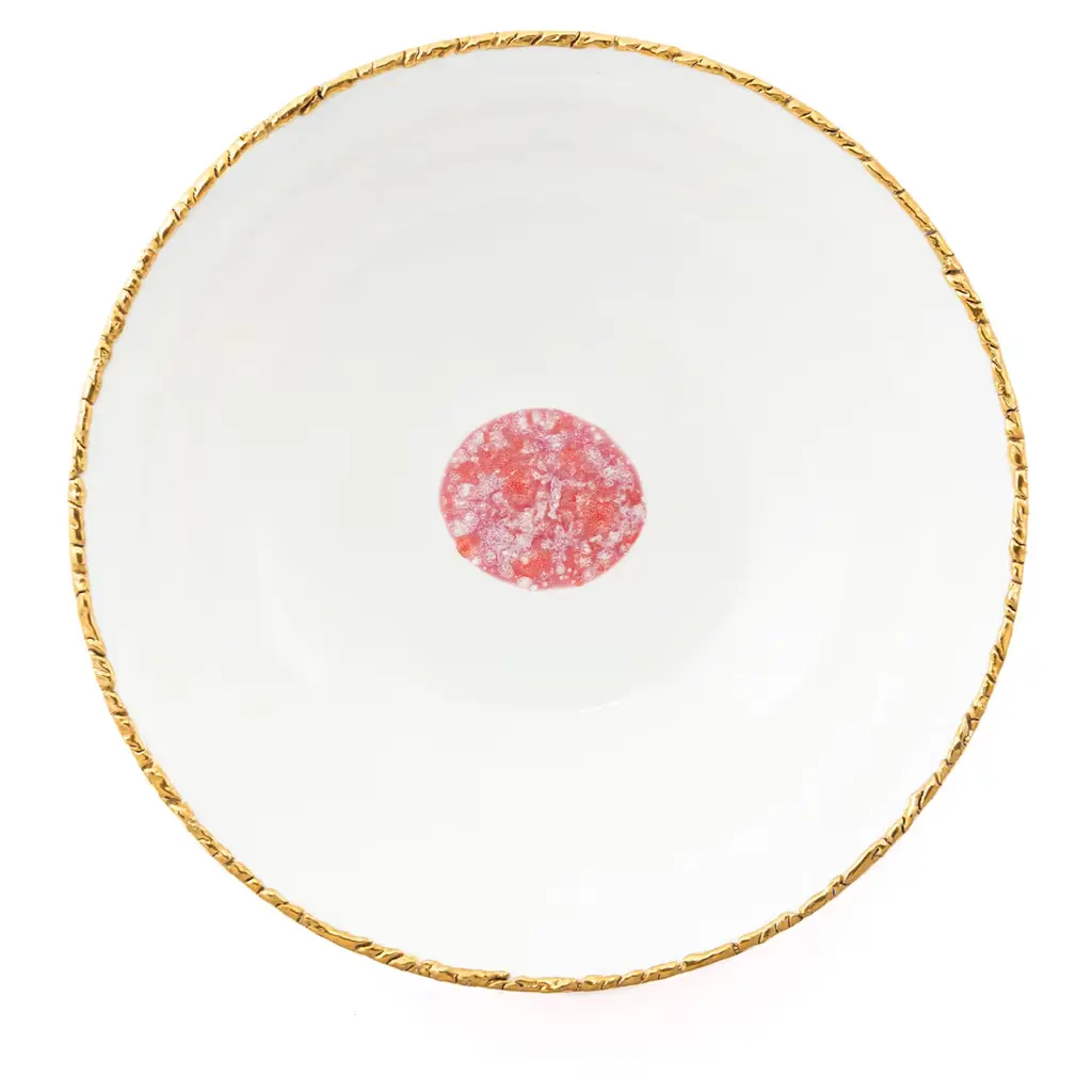 This salad Bowl, characterized by a Craquelé Edge, is entirely hand-decorated. Small imperfections, subsidence, and ripples of the surface are deliberately present and they are a feature of the product, proving the hand-made manufacturing procedure.