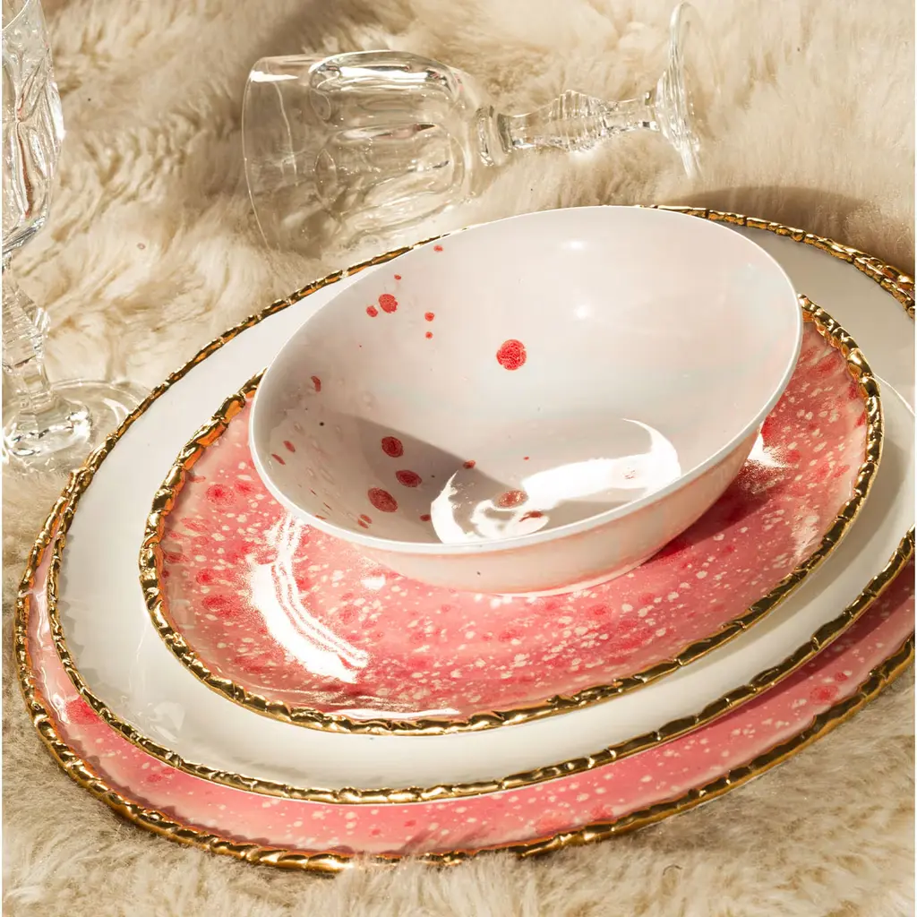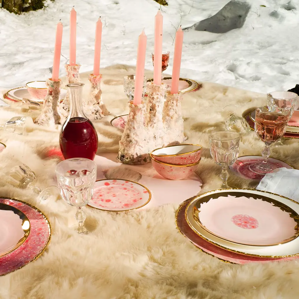This set, characterized by a Craquelé Edge, is entirely hand-decorated. Small imperfections, subsidence, and ripples of the surface are deliberately present and they are a feature of the product, proving the hand-made manufacturing procedure.