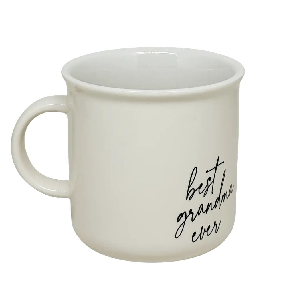 ABOUT this ITEM Show Grandma just how special she is with our Best Grandma Ever Mug. Whether it’s for her morning coffee, afternoon tea, or a quiet moment to herself, this heartfelt mug is the perfect way to celebrate her. With its sweet message and timeless design, it makes a thoughtful gift for any occasion—whether it’s Mother’s Day, her birthday, or just to show your love. A keepsake she’ll cherish and enjoy every day. COFFEE MUG details 11oz Capacity Campfire Style Mug Neutral Mug with Black “best grandma ever” design on both sides Size: 3.75"W x 3.63"H (4.88" w/handle) Designed in the USA, Imported Style No. CM161 COFFEE MUG care Dishwasher and Microwave Safe Wash Before Use and Avoid Abrasive Cloths When Cleaning Use Caution When Removing From Microwave <!-- td {border: 1px solid #ccc;}br {mso-data-placement:same-cell;} --> <!-- td {border: 1px solid #ccc;}br {mso-data-placement:same-cell;} -->
