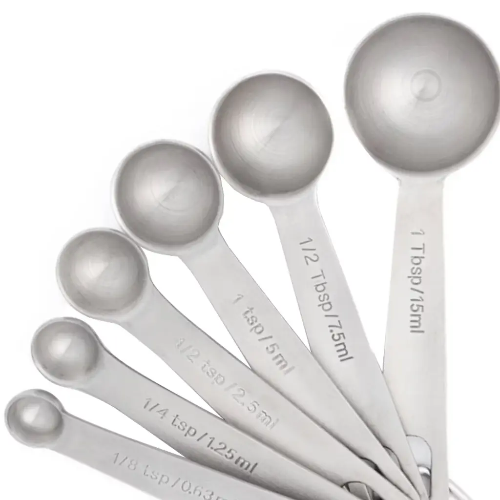 Achieve culinary precision with the Better Houseware Measuring Spoon Set. This set includes 6 solid stainless steel spoons, offering measurements of 1/8 tsp., 1/4 tsp., 1/2 tsp., 1 tsp., 1/2 tbsp., and 1 tbsp., ensuring accuracy for all your cooking and baking needs. Crafted for durability and ease of use, these spoons are an essential addition to any kitchen._