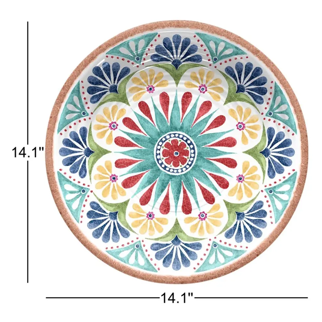 Bring some much-needed color to your dining room or kitchen table with this round melamine platter. It's made of weather-resistant melamine, and it is machine-made, so it'll stand up to chips and scratches. And with a PTFE-free design, this serving bowl is safe enough to hold food. Something to remember later: The platter is not microwave- or oven-safe, but is dishwasher-safe for easy cleaning.