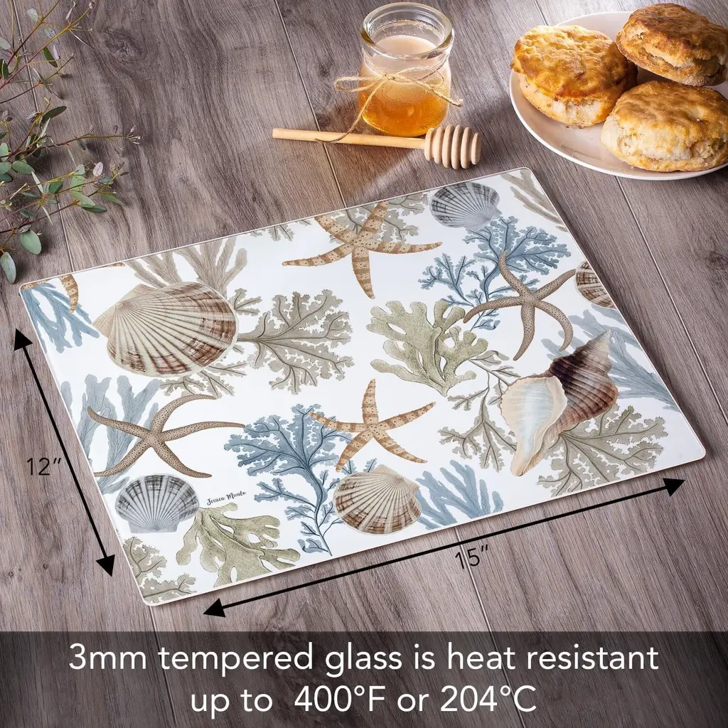 Beyond The Shore 3Mm Heat Tolerant Tempered Glass Cutting Board 15” X 12” Manufactured In The Usa Dishwasher Safe - Multi