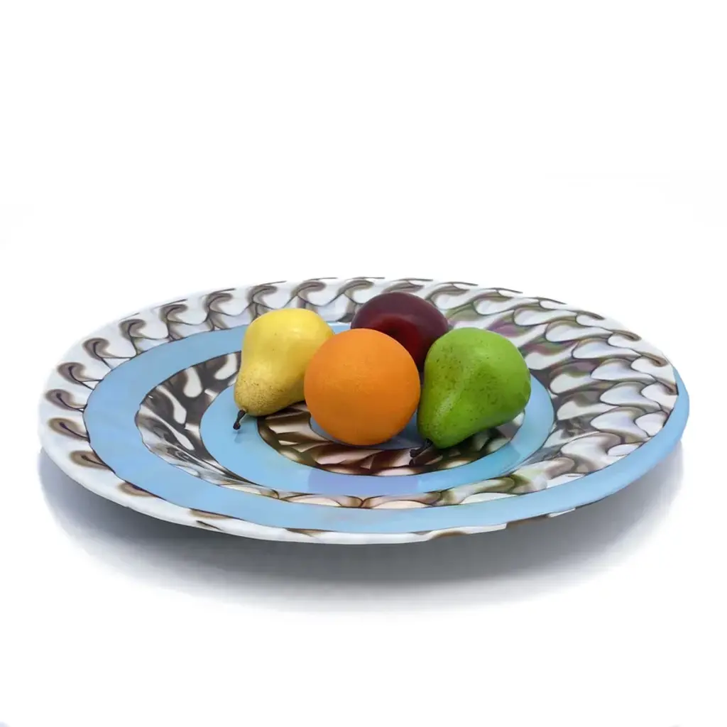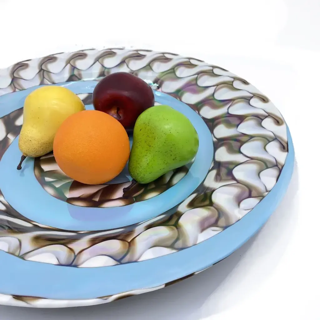 BIFORA is an amazing Decorative Murano glass plate. Modern design round centerpiece for your home decor. You can use it also as elegant fruit bowl.Whether you're looking for an elegant addition to decorate your dining room or an original Venetian glass gift idea to amaze someone, these decorative fruit plates in Venetian glass are the perfect solution! Find the perfect match for your home and create a truly unique and original interior design. All our products are handcrafted and of the highest production quality. Non-substantial variations in shape, size, color, and/or minor imperfections are inevitable and are typical of manual glasswork, highlighting the artisanal craftsmanship.