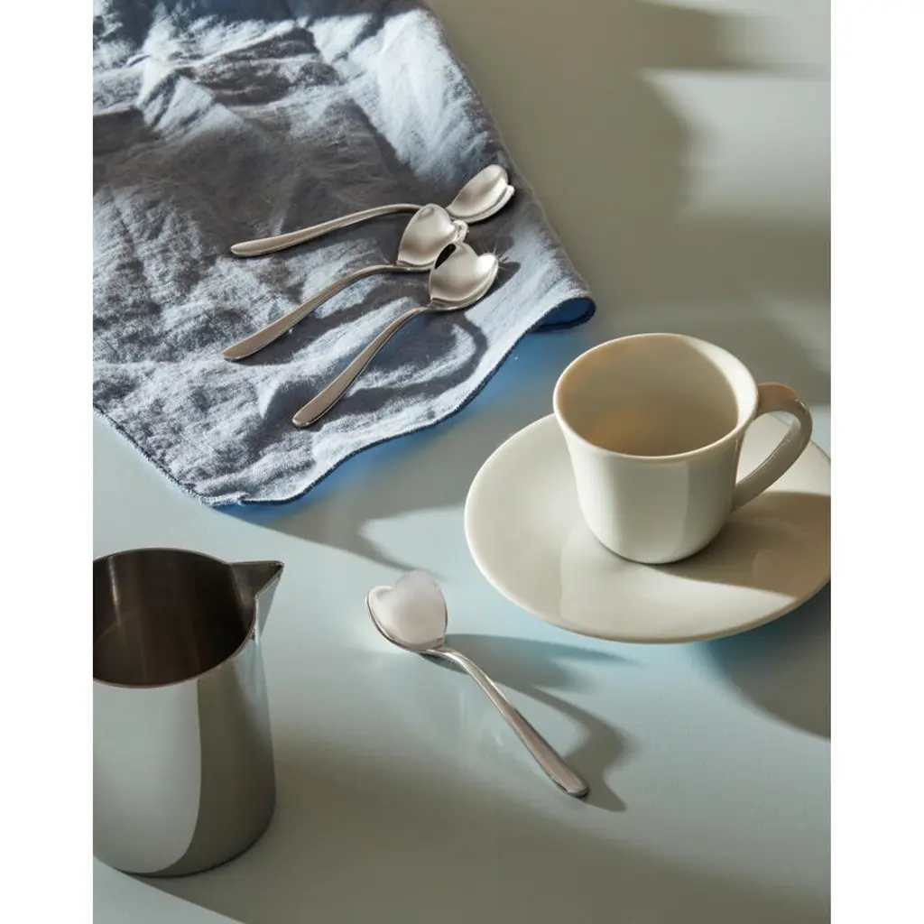 Alessi's Big Love tea cream spoons add a playful touch of romance to serving tea and small desserts. Designed by Miriam Mirri, these heart-shaped spoons are crafted from polished stainless steel and come in a set of four. The Big Love spoons are also perfect for shared moments!