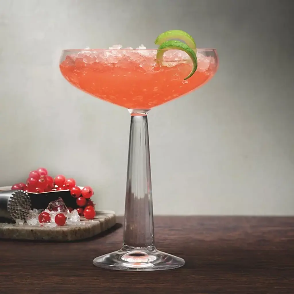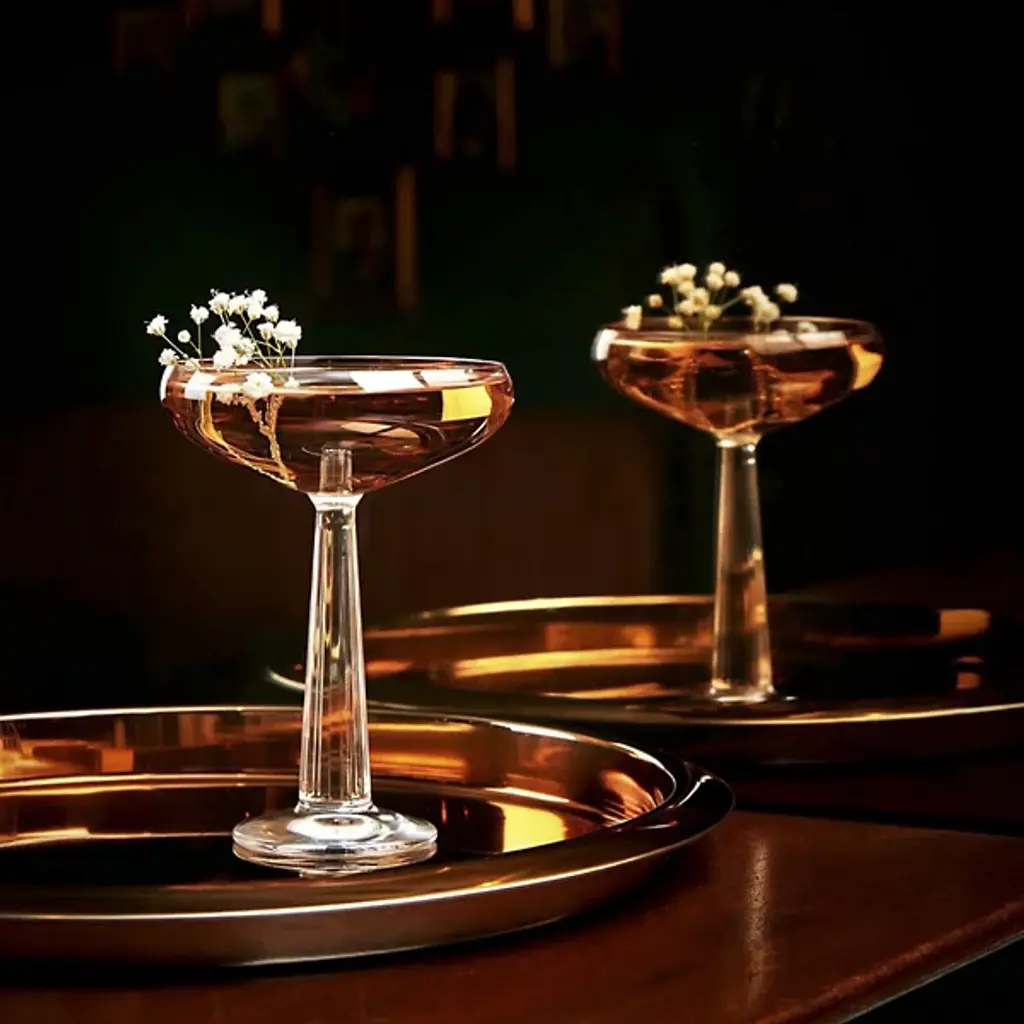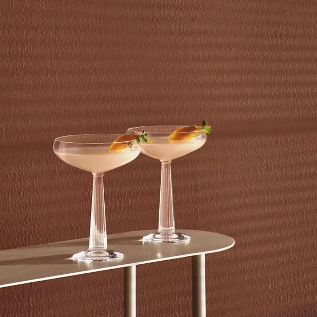 A fresh addition to the Big Top Coupe Glass, Set of 2 from Nude, these coupe glasses bring a modern twist to the circus-inspired design. Crafted from clear lead-free crystal, they feature a generous bowl and a tapered stem adorned with a raised linear pattern for a sophisticated, tactile touch. This elegant set of two is perfect for stylish entertaining.