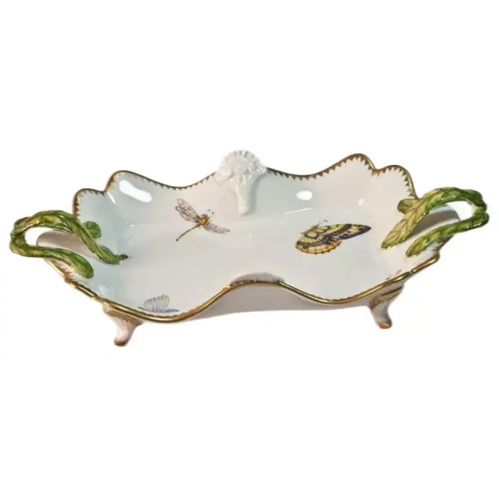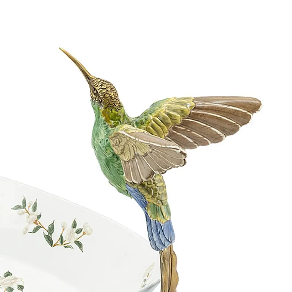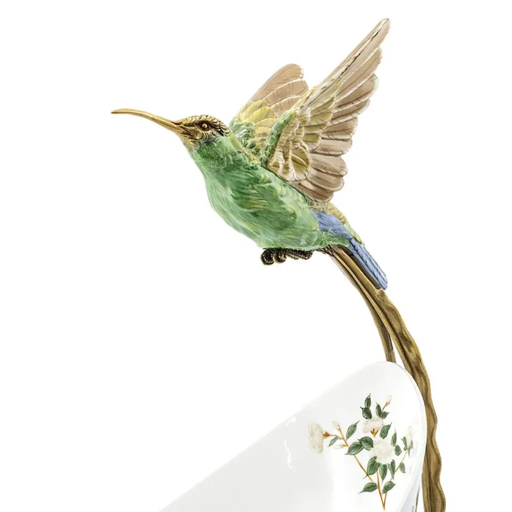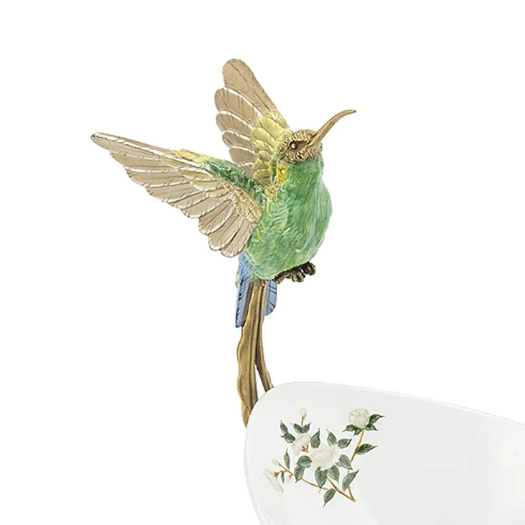 Bowls birds Porcelain hand-painted in whiteporcelain with a bronze frame. With 2 birdsin porcelain, hand-painted and with bronze head and beak.