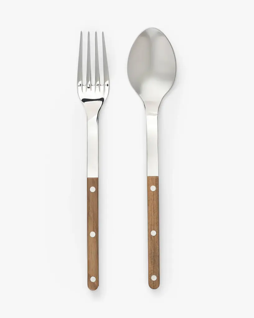 The Bistrot Teak Serving Set by Sabre brings subtle texture and warmth to place settings. Its stainless steel and teak materials complement each other on your everyday tabletop. The set includes a serving spoon and a serving fork.