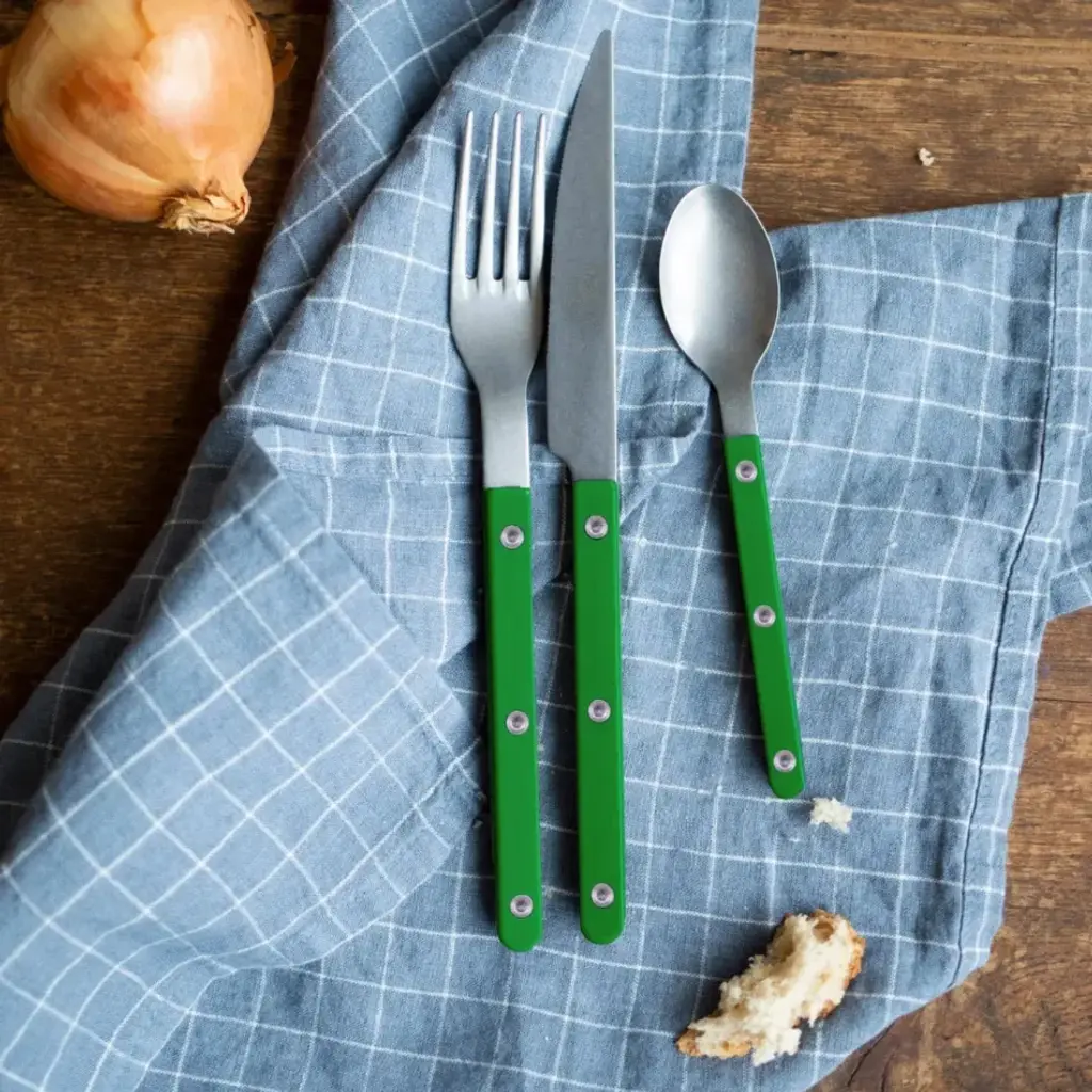 With the Bistrot collection, we were inspired by some of our favorite places: restaurants, terraces and cafés. When designing this cutlery we wanted to faithfully capture the atmosphere while adding a modern touch: the styling is simple, the rivets are visible, while the colors and materials stand out nicely. Available with gloss or vintage finishes, we’re sure you’ll enjoy this collection, which is designed to be both traditional and contemporary at the same time. Established in France in 1993 by Francis Gelb, Sabre Paris is renowned for the vast assortment of printed mix-and-match acrylic designs in its library. All pieces made in France using 18/10 stainless steel. Dishwasher safe.