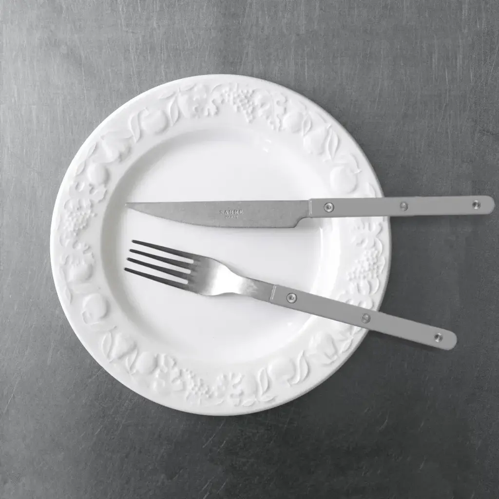 With the Bistrot collection, we were inspired by some of our favorite places: restaurants, terraces and cafés. When designing this cutlery we wanted to faithfully capture the atmosphere while adding a modern touch: the styling is simple, the rivets are visible, while the colors and materials stand out nicely. Available with gloss or vintage finishes, we’re sure you’ll enjoy this collection, which is designed to be both traditional and contemporary at the same time. Established in France in 1993 by Francis Gelb, Sabre Paris is renowned for the vast assortment of printed mix-and-match acrylic designs in its library. All pieces made in France using 18/10 stainless steel. Dishwasher safe.