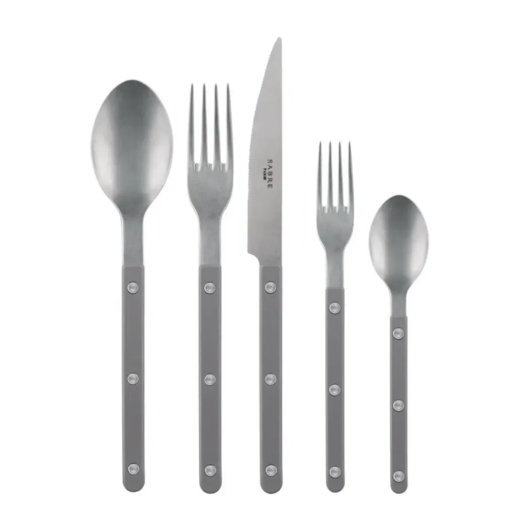 With the Bistrot collection, we were inspired by some of our favorite places: restaurants, terraces and cafés. When designing this cutlery we wanted to faithfully capture the atmosphere while adding a modern touch: the styling is simple, the rivets are visible, while the colors and materials stand out nicely. Available with gloss or vintage finishes, we’re sure you’ll enjoy this collection, which is designed to be both traditional and contemporary at the same time. Established in France in 1993 by Francis Gelb, Sabre Paris is renowned for the vast assortment of printed mix-and-match acrylic designs in its library. All pieces made in France using 18/10 stainless steel. Dishwasher safe.