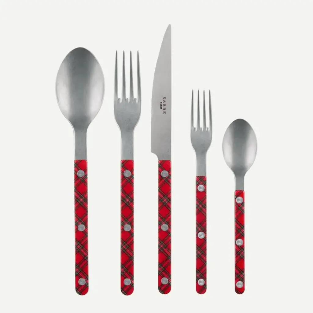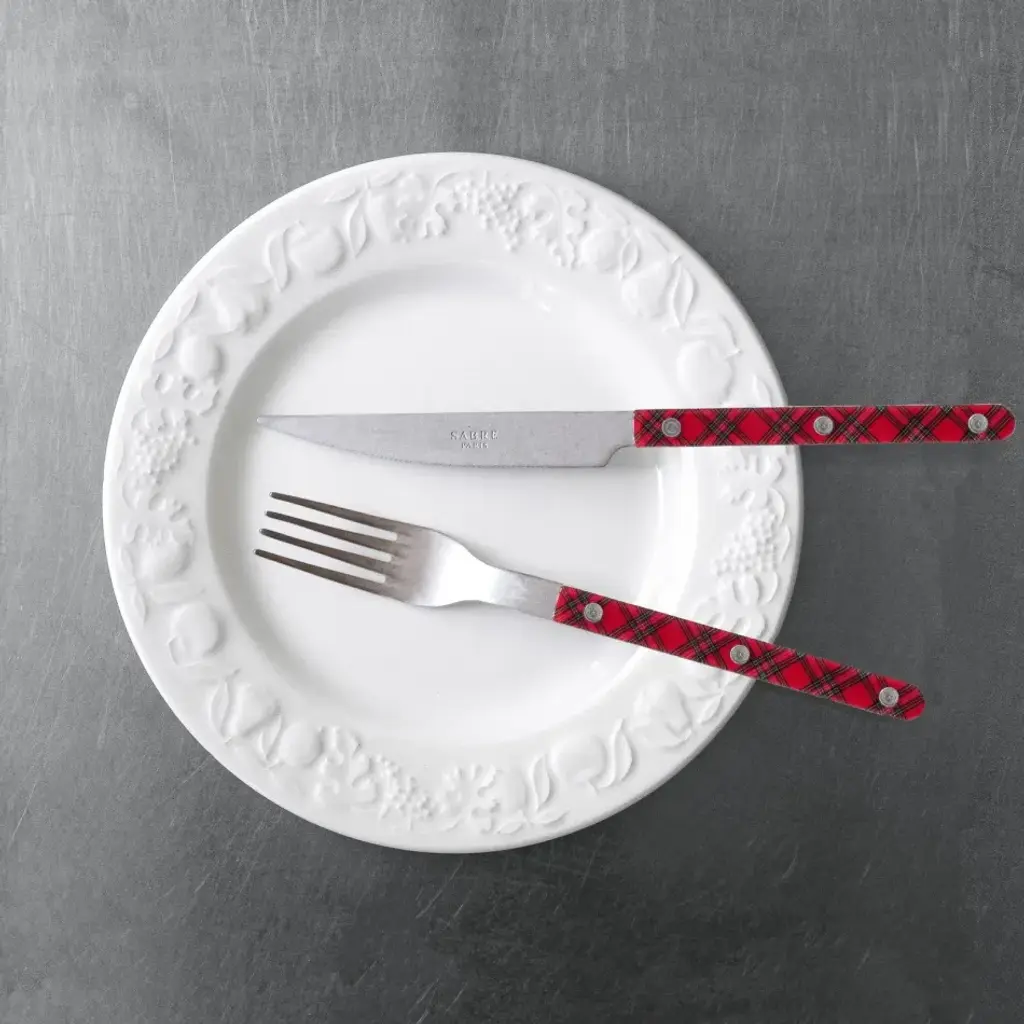 Everything is now possible at the table. Draped in a tartan pattern, this collection brings a touch of the countryside to city dinners. On the sleeves of these boisterous accessories run revisited checks, in alliances of deep tones: garnet red and fir green. Unexpectedly, the print gives a boost to even the most well-behaved tablecloths and gaily heckles crockery. It gives rise to a desire to prepare daring recipes full of drama. To be savoured in three clicks of the fork. With tartan decor, of course. Established in France in 1993 by Francis Gelb, Sabre Paris is renowned for the vast assortment of printed mix-and-match acrylic designs in its library. All pieces made in France using 18/10 stainless steel. Dishwasher safe.