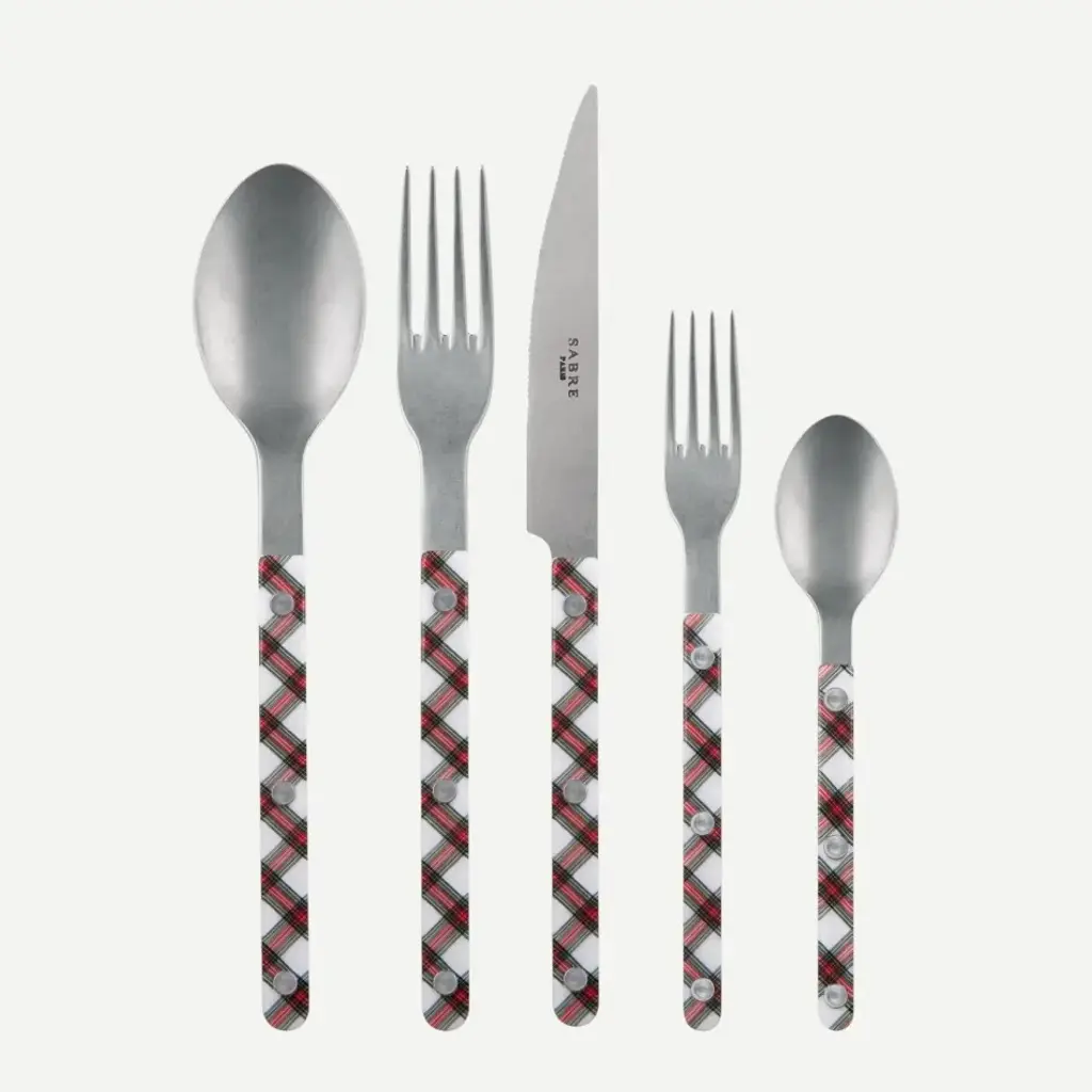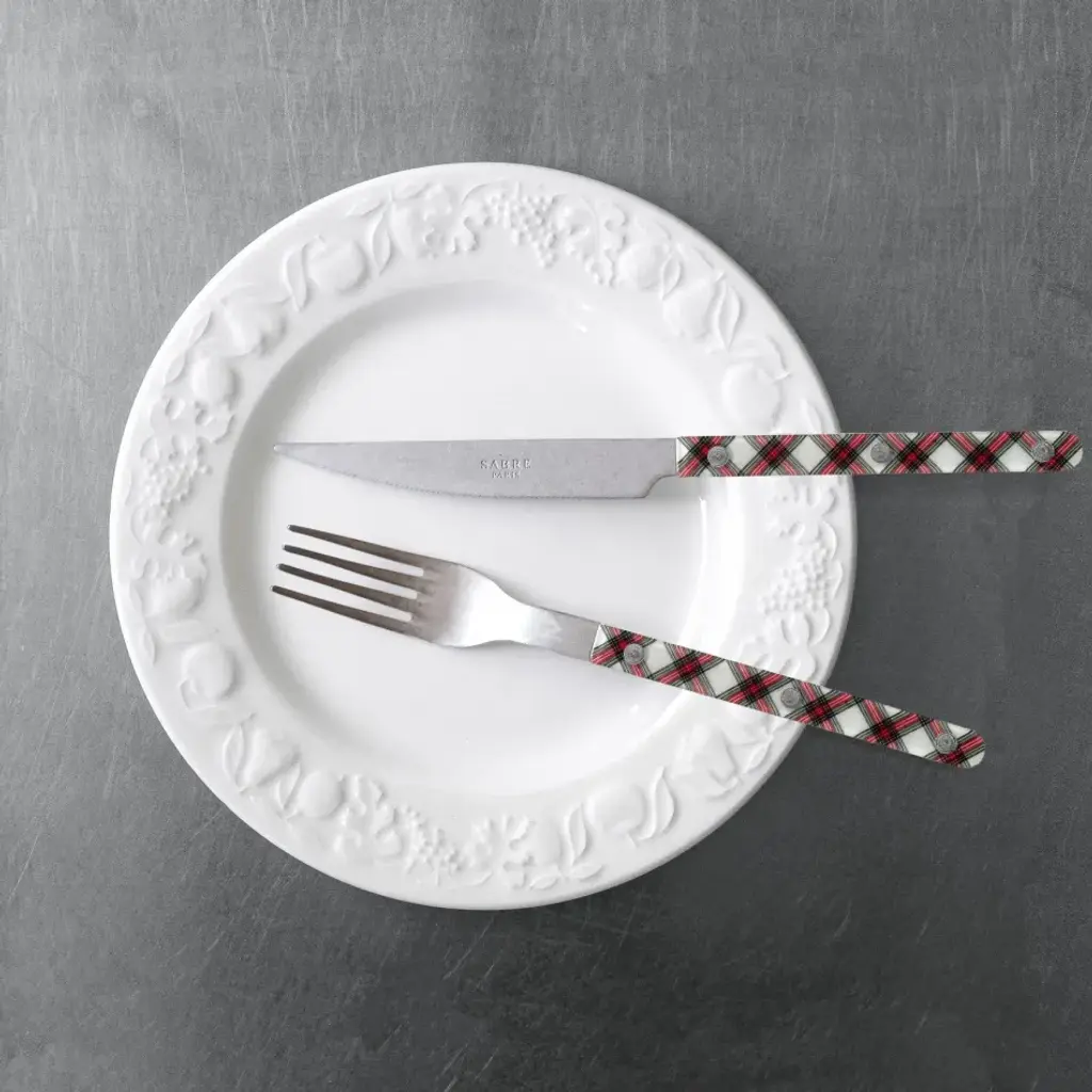 Everything is now possible at the table. Draped in a tartan pattern, this collection brings a touch of the countryside to city dinners. On the sleeves of these boisterous accessories run revisited checks, in alliances of deep tones: garnet red and fir green. Unexpectedly, the print gives a boost to even the most well-behaved tablecloths and gaily heckles crockery. It gives rise to a desire to prepare daring recipes full of drama. To be savoured in three clicks of the fork. With tartan decor, of course. Established in France in 1993 by Francis Gelb, Sabre Paris is renowned for the vast assortment of printed mix-and-match acrylic designs in its library. All pieces made in France using 18/10 stainless steel. Dishwasher safe.