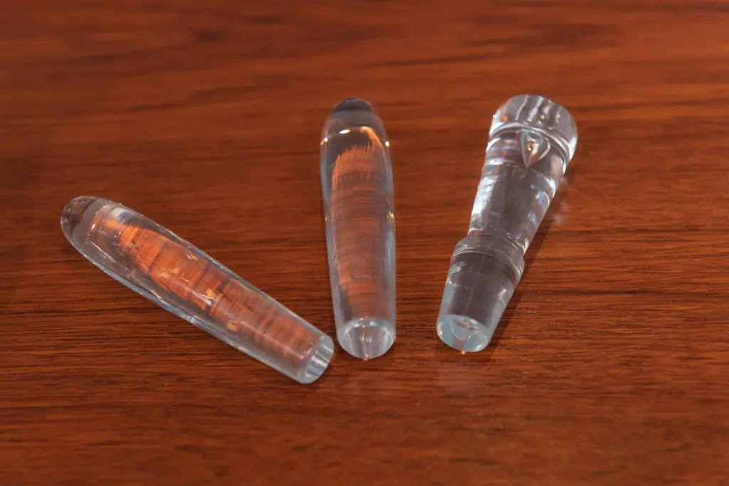 Pair of Orrefors decanters designed by Bjorn Wiinblad and a single Steuben glass decanter, all signed.