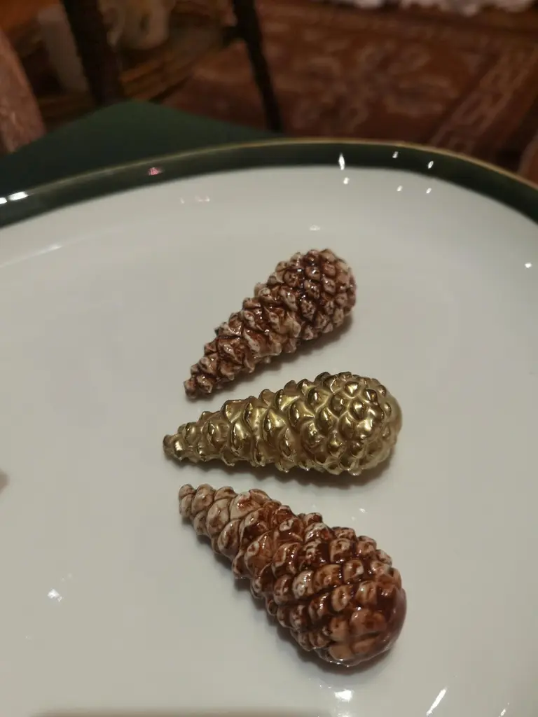 Completely handmade and hands-free painted large oval porcelain plate in Black Forest style. A natural molded porcelain bambi figure is sitting left hand and three pines are fixed on the porcelain plate. One pine is gilded in 24 carat gold. The plate is painted with a green rim and framed with a 24-carat gold line. Gives any home a charming warm winter character in the style of black forest. Handmade in Bavaria Germany by Sofina Boutique Kitzbühel
