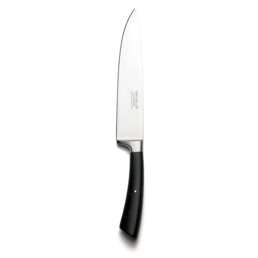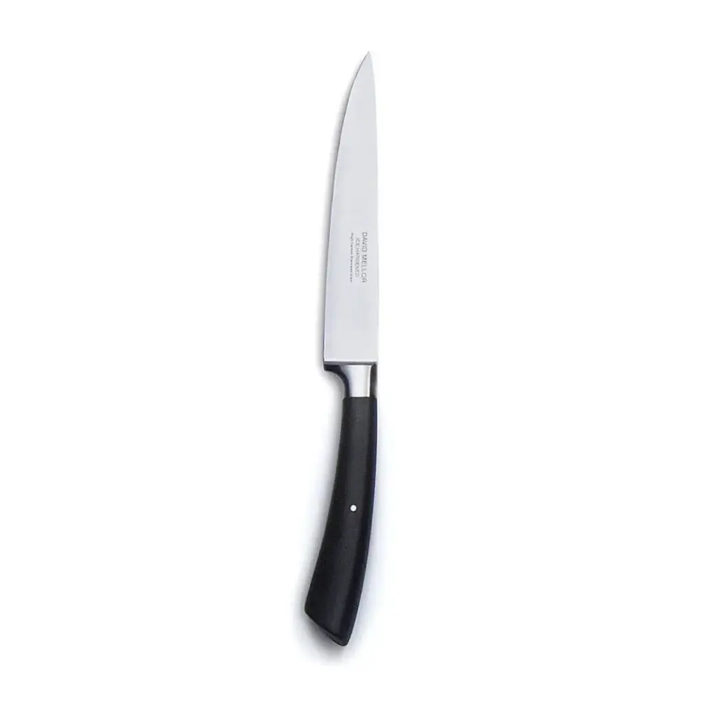 Corin Mellor's 'Black Handle' stainless steel kitchen knives, specially developed for David Mellor Design, have proved enormously popular since they were first introduced. The collection has a very distinctive modern look and high levels of performance, using the latest innovative manufacturing techniques. Ice hardening processes make the blades exceptionally sharp. These are really professional kitchen knives, superb in quality and beautiful to use. These are razor sharp knives. The high carbon stainless steel blades exploit the latest techniques of steel casting and are then ice hardened to minus 80°c. This innovative process stabilizes the metallurgical structure of the steel, creating an extremely hard and durable cutting edge. The knives are taper ground with the forging running down the full length of the handle. Each knife handle incorporates an internal back weight, giving an excellent balance and grip. All knives are supplied in individual David Mellor boxes. This carefully selected set of the 4 most essential kitchen knives contains: Paring knife 10cm Cook's knife 12cm Cook's knife 15cm Chef's knife 18cm Our knife sets come in specially designed Birchwood boxes with sliding lid. These make perfect gift sets and the handmade boxes can provide permanent safe storage for your knives. Also available are the Specialist Knife Set and the Carving Set, these 3 sets combine to form a comprehensive David Mellor knife collection.