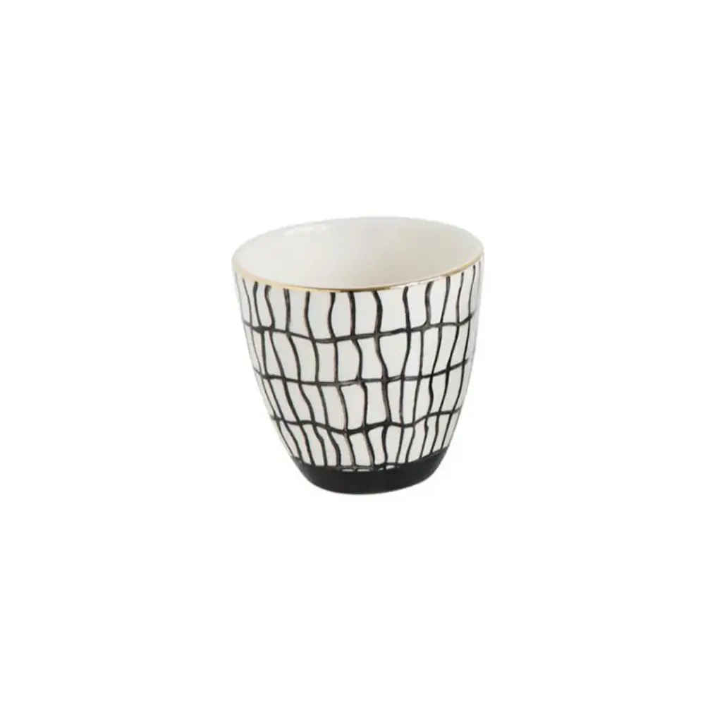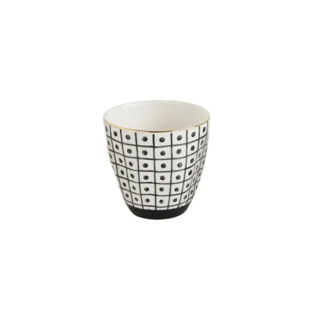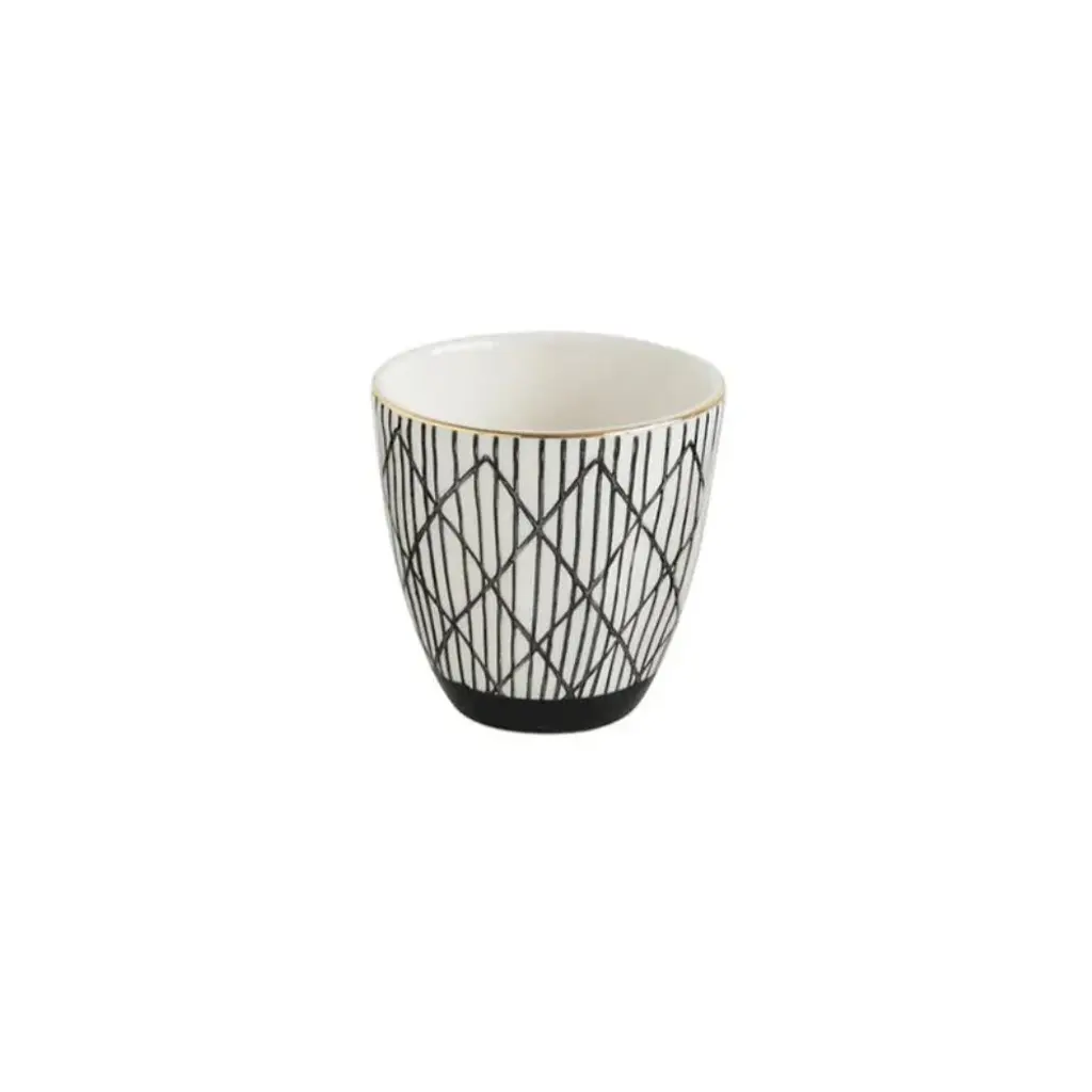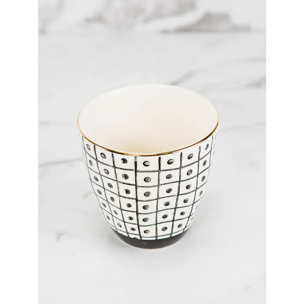 Add a touch of elegance with these black + white stoneware cups. Made from high-quality ceramic material, each cup features a varied black + white design with a subtle gold rim. Perfect for entertaining (or just your morning coffee)!
