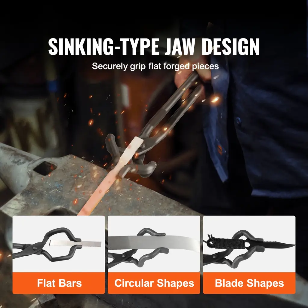 Blacksmith Tongs, Carbon Steel Forge Tongs With A3 Steel Rivets, For Knife Blades, Long Pieces, Circular Forgings, For Beginner - Z V-Bit Tongs