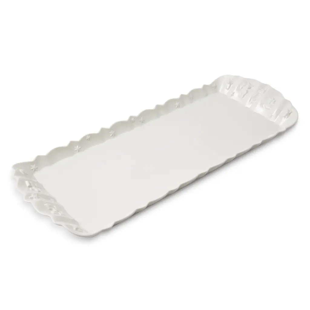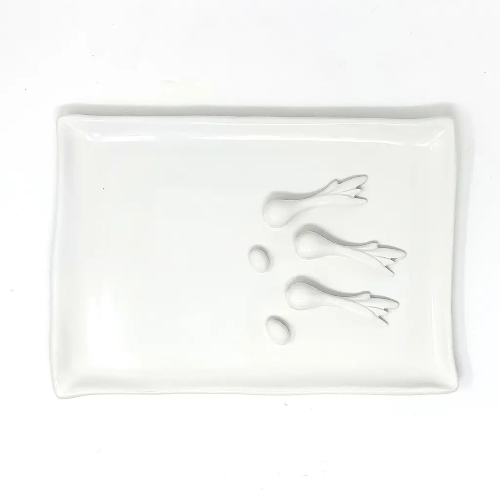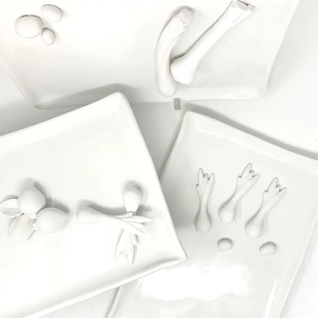 Classic, minimalist elegance in all white.A blanc de chine tray adorned with three dimensional scallions and olives is a functional piece of art for the table. Made in Italy for The Mane Lion.The Mane Lion was established in 1979 in the heart of Philadelphia's fabled Main Line, introducing a line of charming, hand-painted serving pieces that enhanced the act of entertaining. Today, The Mane Lion continues to pursue that passion to create something that is particular and of the highest quality. Our products are crafted by master artisans in generations old Italian factories. Centuries of experience and a strong sense of pride have enabled us to produce the finest, most durable, most beautiful ceramic dishes on earth. The Made in Italy label is synonymous with meticulous craftsmanship, dedication to time-honored traditions, and a lifestyle that is relaxed and refined.