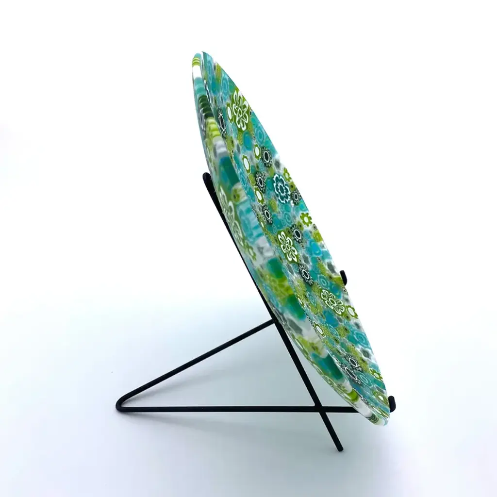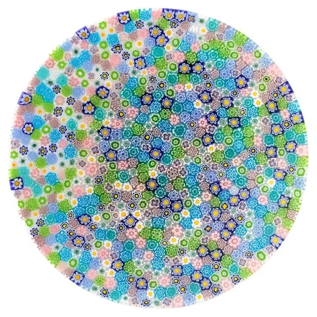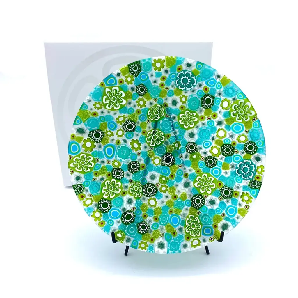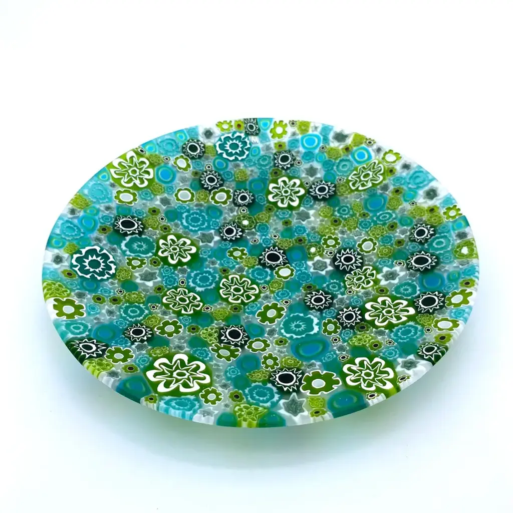 BLOOM GREEN is a green Murano glass plate that reflects nature-inspired beauty with green murrine. A unique and captivating addition to your home.Dozens of exquisite decorative plates and a wide range of options to choose from. Modern, classic, multicolored, monochromatic, transparent, simple and minimalist, or more sophisticated and elegant, with matte, satin, or translucent finishes. You will be impressed by the refinement and elegance of our hand-blown glass plates, authentic Venetian glass objects that you can only find in our catalog. All our products are artisanal and of the highest production quality. Non-substantial variations in shape, size, color, and/or minor imperfections are inevitable and are typical of manual glasswork, showcasing the artisanal craftsmanship.