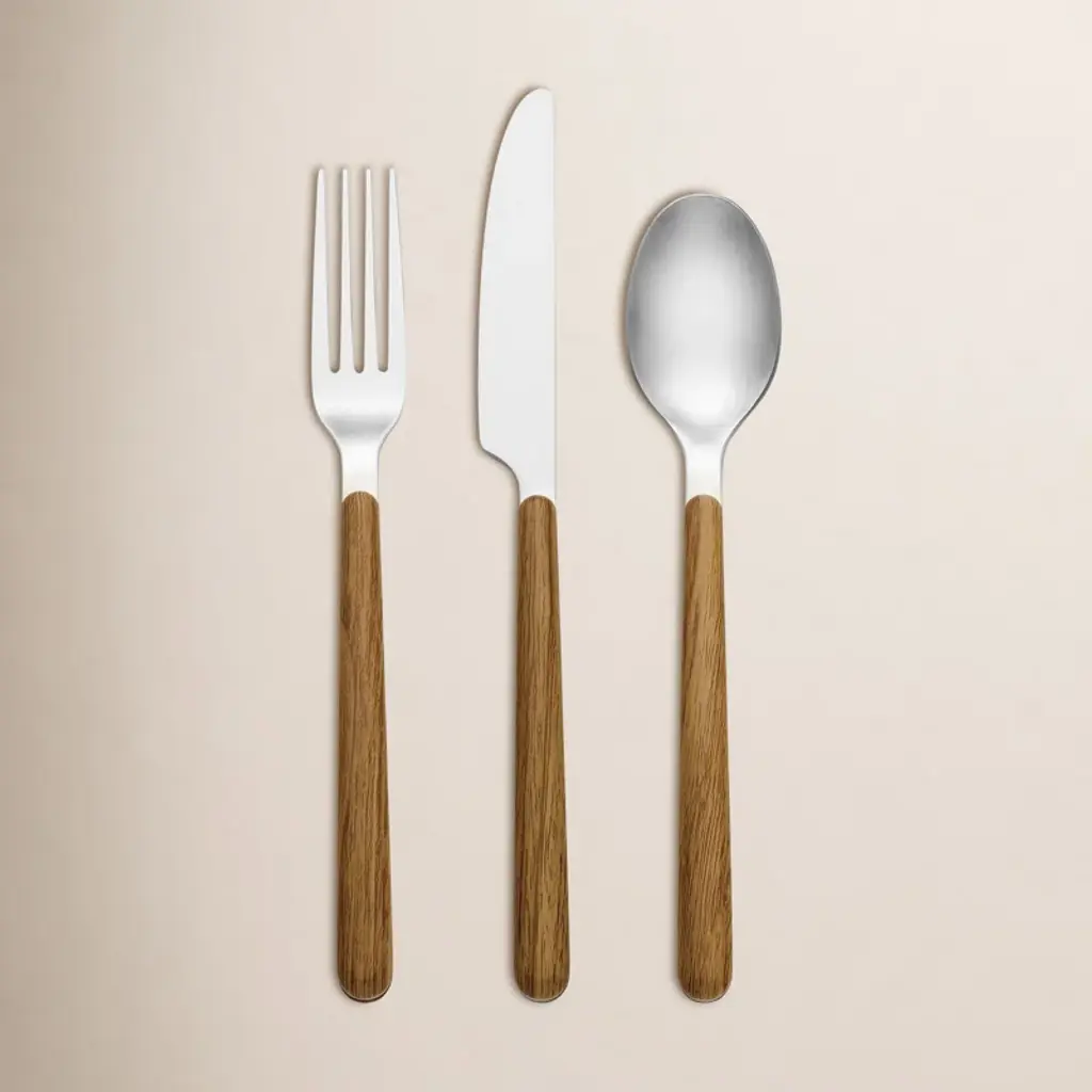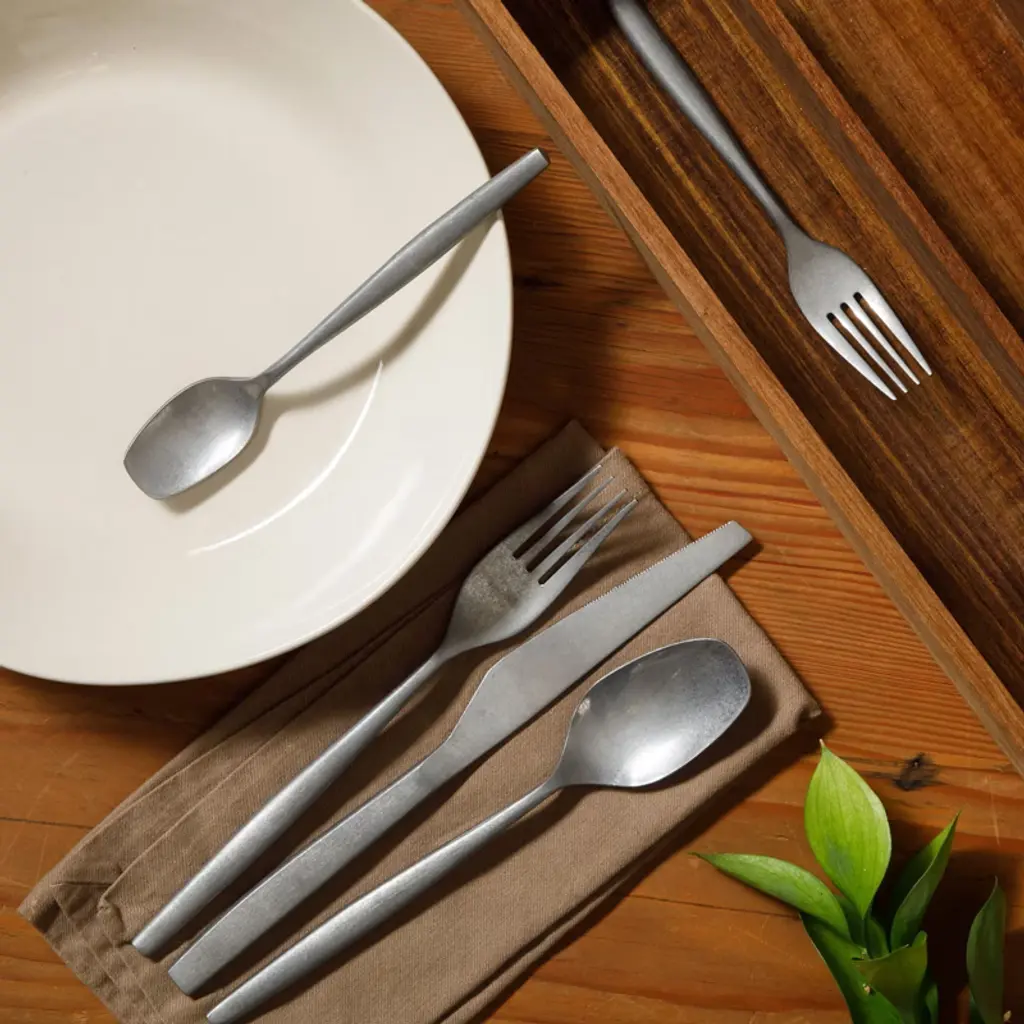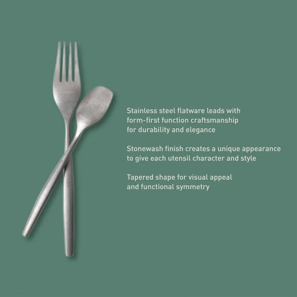 An intermix of modern symmetry, vintage style and delicate profiles, the Bloomhouse® 21-piece Stonewash Flatware Set delivers front-row quality utensils to furnish any place setting with durability, sophistication, and form-first function. Tumbled and washed between Earth's natural stones, this flatware set conjures a vintage style that combines freshness in detail with familiarity in emotion. The tapered head and handle create a slender, geometric shape that is easy on the eyes and gentle to the touch. As durable as they are decorative, these stainless steel forks and spoons punctuate a welcome invitation for guests to make and marvel at memories around the table. Dishwasher safe.An intermix of modern symmetry, vintage style and delicate profiles, the Bloomhouse® 21-piece Stonewash Flatware Set delivers front-row quality utensils to furnish any place setting with durability, sophistication, and form-first function. Tumbled and washed between Earth's natural stones, this flatware set conjures a vintage style that combines freshness in detail with familiarity in emotion. The tapered head and handle create a slender, geometric shape that is easy on the eyes and gentle to the touch. As durable as they are decorative, these stainless steel forks and spoons punctuate a welcome invitation for guests to make and marvel at memories around the table. Dishwasher safe.bloomhouse™ is a collection of modern-day kitchen and dining pieces that empower spirits, honor our Earth and celebrate its people. Driven by a responsible, nature-positive ethos, bloomhouse™ aspires to share a lifestyle that's good for you and good for the planet. With a mission rooted in purpose, bloomhouse™ will plant a tree on your behalf with every set sold in partnership with the non-profit organization One Tree Planted. Cook, dine, bake, store, drink - and raise a glass with us. Nourish is Our Nature, and now it's yours too. A COMPLETE SET INCLUDES: Four dinner forks, four dinner spoons, four dinner knives, four salad forks, four teaspoons and one wood caddy NOURISH IS OUR NATURE: bloomhouse™ is a collection of modern-day kitchen and dining pieces that empower spirits, honor our Earth and celebrate its people. Driven by a responsible, nature-positive ethos, bloomhouse™ aspires to share a lifestyle that's good for you and good for the planet.ONE TREE PLANTED PER SET SOLD: In partnership with One Tree Planted, bloomhouse™ will plant a tree around the world for every set sold, keeping our planet healthy and thriving while encouraging acts of kindness and growth. STAINLESS STEEL FLATWARE: Elegant profiles of forks and spoons crafted from stainless steel to furnish any place setting with durability, sophistication and form-first function. MATTE STONEWASH FINISH: Tumbled and washed using Earth's natural stones, this flatware set conjures up a vintage style that combines freshness in detail with familiarity in emotion. Unique variations celebrate the individuality of each utensil.GEOMETRIC SHAPES: Tapered heads and handles promote visual and functional symmetry. Soft corners and delicate lines bring are subtle and comfortable to the grip. Perfect for both everyday and occasional social gatherings. SERVICE FOR FOUR: Slender pieces of flatware are suitable for your most imaginative tablescapes when entertaining a group of 4 at home, or simply as an everyday pleasure. RUSTIC WOOD CADDY: Made from sustainable wood, the caddy features a warm, honey-brown color to beautifully display and store flatware. EASY-CARE FOR YOUR FLATWARE: Dishwasher safe