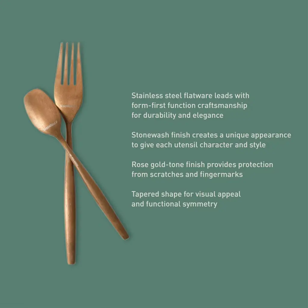 Bloomhouse 20 Piece Stone Washed Rose Gold Flatware 18/10 Stainless Steel Silverware Cutlery Utensil Set With Acacia Wood Caddy - Service For 4