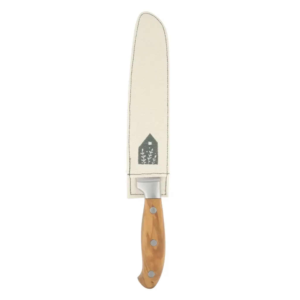 Favored in home and professional kitchens, high-quality German steel cutlery yields a variety of cuts and textures - from mincing aromatics, dicing vegetables to filleting fish and chopping prime steaks. Suitable for everyday use, a German steel knife is rust-resistant and easy to clean, sharpen and maintain. The bloomhouse™ German Steel Bread Knife is forged with a purpose - to cut through thick crusts and pillowy crumbs with sharpness and precision. The full-tang blade provides balance and even weight distribution to reduce pressure and wrist fatigue. Sustainable Italian Olive Wood handle elevates the style of the knife by blending rustic design and utilitarian function. As a nod to our Earth's beauty and resilience, the wood handle features a rustic grained pattern in a natural, golden honey-brown color to add character to the knife. Stainless steel rivets secure the handle and the knife for a strong grip and improved control. Hand wash only. Keep the knife in the protective canvas sheath for safe storage and protection when not in use. bloomhouse™ is a collection of modern-day kitchen and dining pieces that empower spirits, honor our Earth and celebrate its people. Driven by a responsible, nature-positive ethos, bloomhouse™ aspires to share a lifestyle that's good for you and good for the planet. With a mission rooted in purpose, bloomhouse™ will plant a tree on your behalf with every set sold in partnership with the non-profit organization One Tree Planted. Cook, dine, bake, store, drink - and raise a glass with us. Nourish is Our Nature, and now it's yours too. NOURISH IS OUR NATURE: bloomhouse™ is a collection of modern-day kitchen and dining pieces that empower spirits, honor our Earth and celebrate its people. Driven by a responsible, nature-positive ethos, bloomhouse™ aspires to share a lifestyle that's good for you and good for the planet.ONE TREE PLANTED PER SET SOLD: In partnership with One Tree Planted, bloomhouse™ will also plant a tree around the world for every piece sold in an effort to keep our planet healthy and thriving and encourage acts of kindness and moments of growth.WHAT'S IN THE BOX: One 8-inch German Steel bread knife with Italian Olive Wood handleFORGED WITH A PURPOSE: Serrated bread knife cuts through thick crusts and pillowy crumbsHIGH-CARBON, HIGH QUALITY: Perfectly-balanced, high-carbon German Steel blade offers superior strength and easy alignment.FULL TANG CONSTRUCTION: Even weight distribution from the tip of the blade down to the handle provides support to the wrist to reduce pressure and fatigue.ITALIAN OLIVE WOOD HANDLE: Natural-grained Italian Olive Wood handle resists stains and offers a rustic appeal to any kitchen or tableRIVETED HANDLE: Stainless steel rivets secure the single-bolstered handle to provide a strong grip with improved controlEASY-CARE FOR YOUR CUTLERY: Hand wash only. The knife comes with a protective canvas sleeve for safe storage and protection.