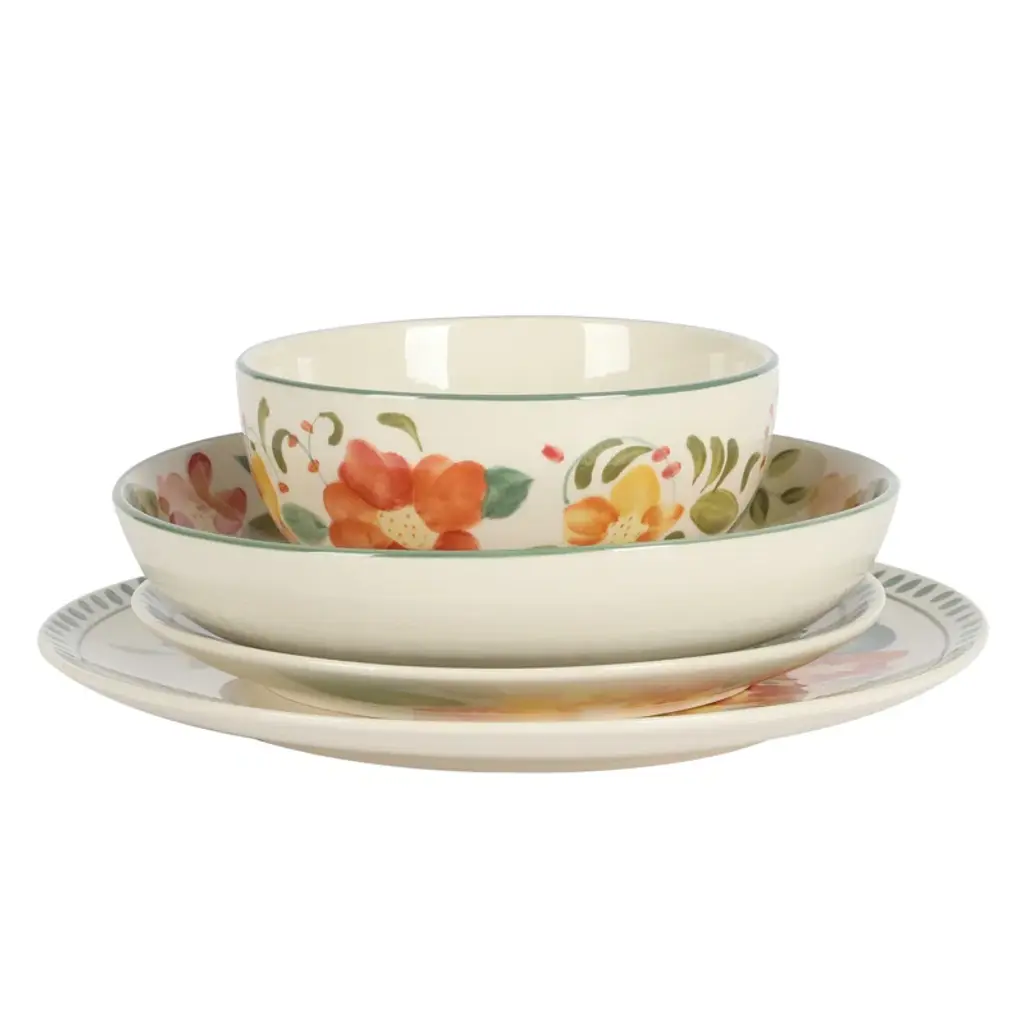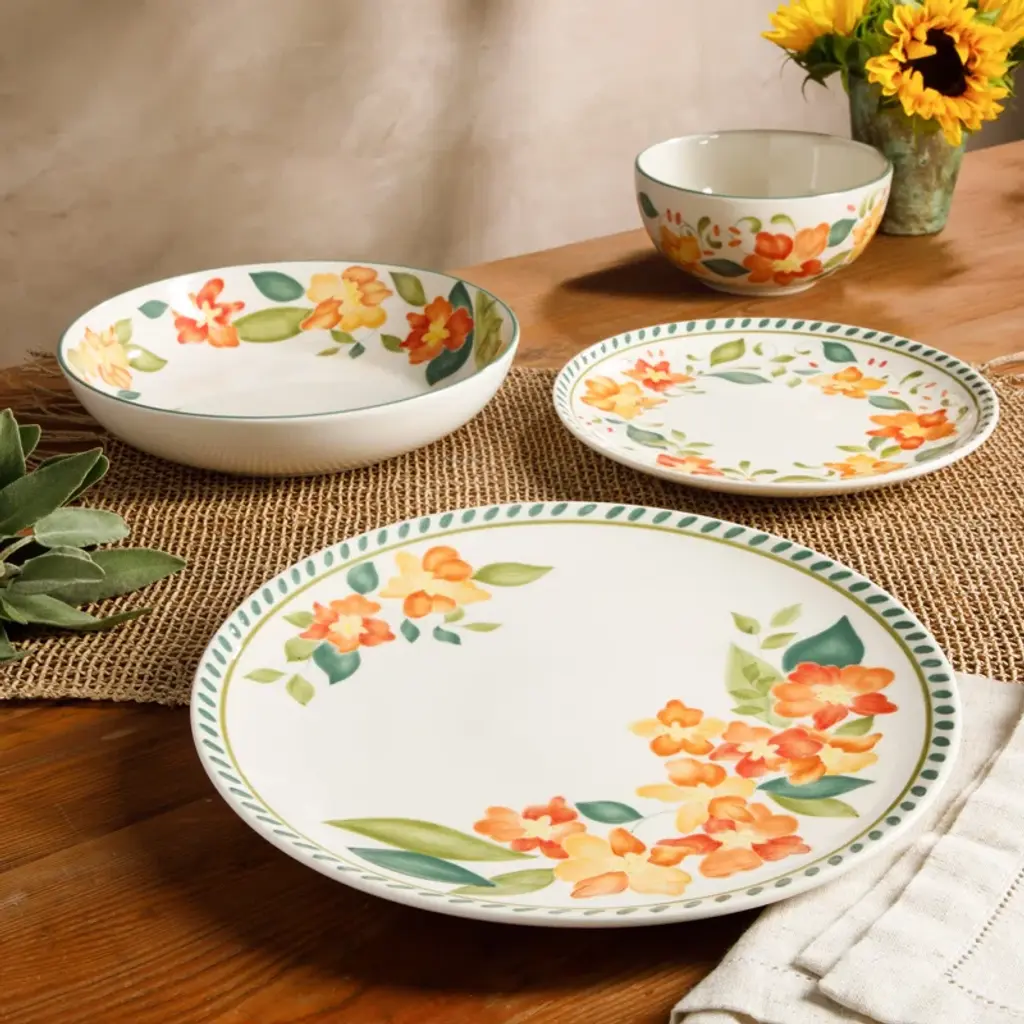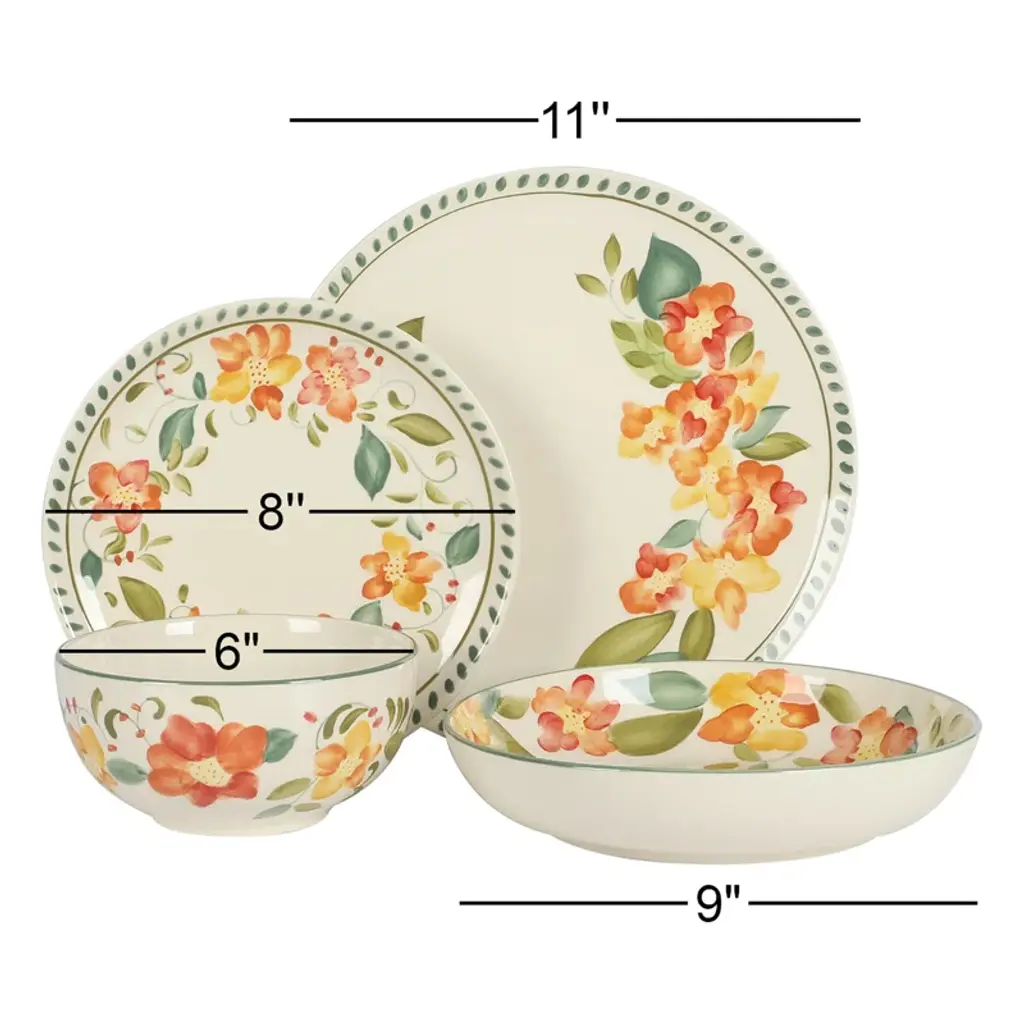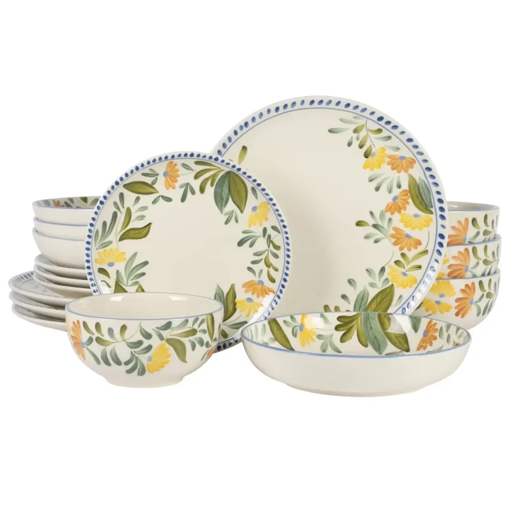 Bloomhouse Cassia Bud 16 Piece Double Bowl Hand Painted Stoneware Plates And Bowls Dinnerware Set