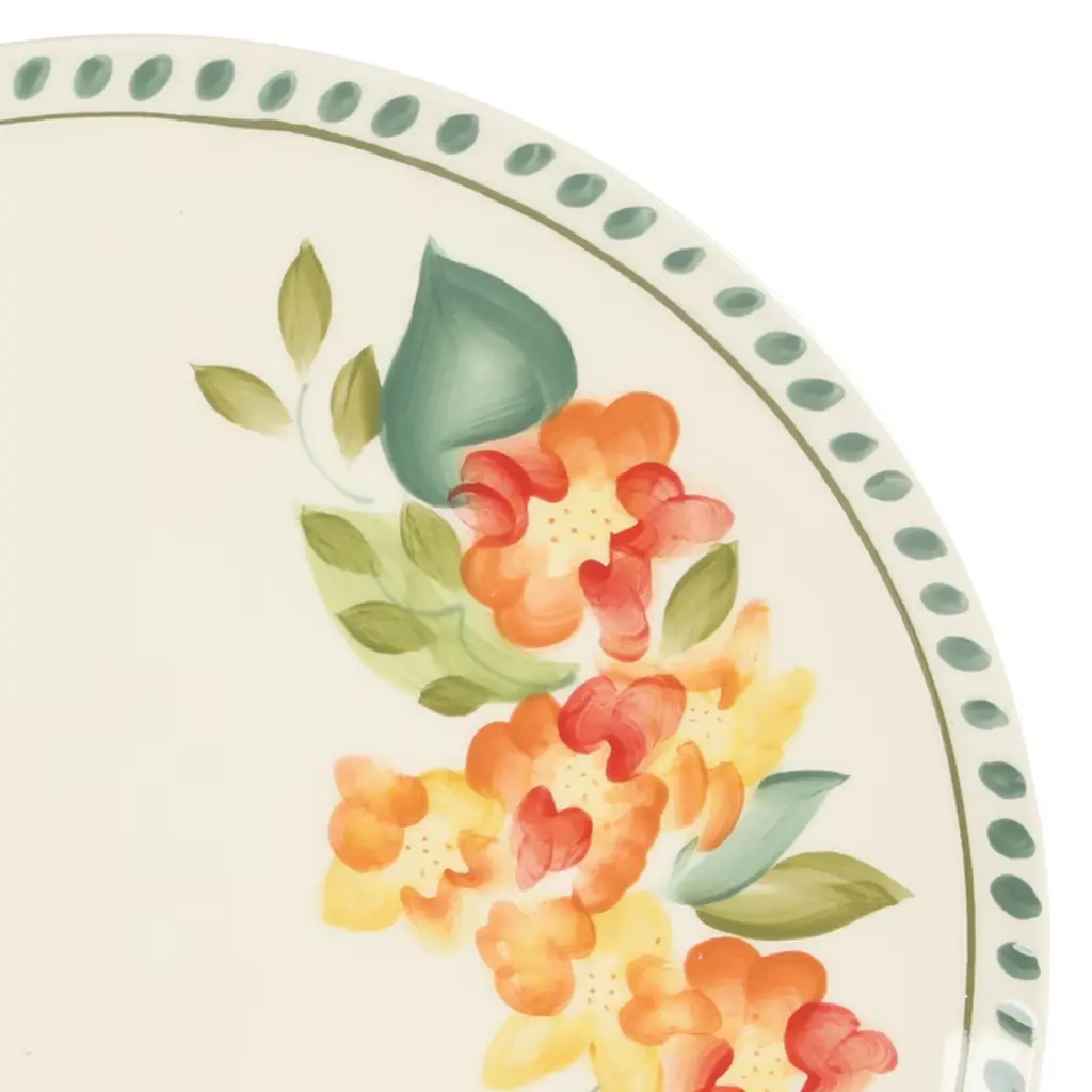 Bloomhouse Cassia Bud 16 Piece Double Bowl Hand Painted Stoneware Plates And Bowls Floral Dinnerware Set