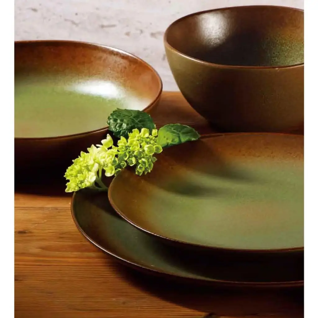 Bloomhouse Palermo Sun 16 Piece Double Bowl Stoneware Reactive Glaze Plates And Bowls Dinnerware Set - Cardamom Green