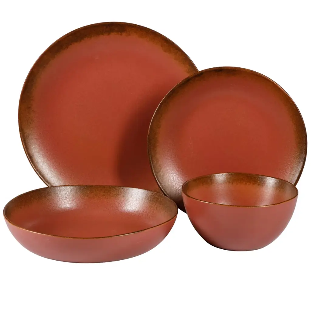 Let the Palermo Sun 16-piece Reactive Dinnerware Set from bloomhouse™ grace your kitchen or table with organic overtones and artisanal aesthetics every day. Made from carefully selected and sustainable clays, this stoneware dinnerware collection brings substantial style and heft to elevate dining and entertaining at home. Rustic shapes lend a handmade look and feel, like each plate and bowl came out of your favorite pottery studio. Peppered with intentional flecks from the reactive glaze finish, these pieces play well with other tabletop coordinates to set your most imaginative tablescapes. Rich in character and full of life, this set outfits any place setting for weeknight suppers and fancier fares. Dishwasher and microwave safe. bloomhouse™ is a collection of modern-day kitchen and dining pieces that empower spirits, honor our Earth and celebrate its people. Driven by a responsible, nature-positive ethos, bloomhouse™ aspires to share a lifestyle that's good for you and good for the planet. With a mission rooted in purpose, bloomhouse™ will plant a tree on your behalf with every set sold in partnership with the non-profit organization One Tree Planted. Cook, dine, bake, store, drink - and raise a glass with us. Nourish is Our Nature, and now it's yours too.Let the Palermo Sun 16-piece Reactive Dinnerware Set from bloomhouse grace your kitchen or table with organic overtones and artisanal aesthetics every day. Made from carefully selected and sustainable clays, this stoneware dinnerware collection brings substantial style and heft to elevate dining and entertaining at home. Rustic shapes lend a handmade look and feel, like each plate and bowl came out of your favorite pottery studio. Peppered with intentional flecks from the reactive glaze finish, these pieces play well with other tabletop coordinates to set your most imaginative tablescapes. Rich in character and full of life, this set outfits any place setting for weeknight suppers and fancier fares. Dishwasher and microwave safe. bloomhouse is a collection of modern-day kitchen and dining pieces that empower spirits, honor our Earth and celebrate its people. Driven by a responsible, nature-positive ethos, bloomhouse aspires to share a lifestyle that's good for you and good for the planet. With a mission rooted in purpose, bloomhouse will plant a tree on your behalf with every set sold in partnership with the non-profit organization One Tree Planted. Cook, dine, bake, store, drink - and raise a glass with us. Nourish is Our Nature, and now it's yours too. WHAT'S IN THE BOX: Four 11-inch meal plates, four 8-inch starter plates, four 6-inch everyday bowls, and four 9-inch meal bowlsNOURISH IS OUR NATURE: bloomhouse is a collection of modern-day kitchen and dining pieces that empower spirits, honor our Earth and celebrate its people. Driven by a responsible, nature-positive ethos, bloomhouse aspires to share a lifestyle that's good for you and good for the planet.ONE TREE PLANTED PER SET SOLD: In partnership with One Tree Planted, bloomhouse will plant a tree around the world for every set sold, keeping our planet healthy and thriving while encouraging acts of kindness and growth.STONEWARE CRAFTSMANSHIP: A mix of sustainable clays shaped and placed under high firing temperature to produce a thoughtfully-crafted dinnerware set with form and function.SERVICE FOR FOUR: Rustic stoneware set is suitable for your most imaginative tablescapes when entertaining a group of 4 at home, or simply as an everyday pleasure.ORGANIC SHAPES: Each plate and bowl offers style and authenticity like they came out from your favorite pottery studio.UNIQUE VARIATIONS: Artisanal flecks from reactive glazing techniques highlight traditional artistry and modern ceramic designs.EASY-CARE FOR YOUR DINNERWARE: Dishwasher and microwave safe