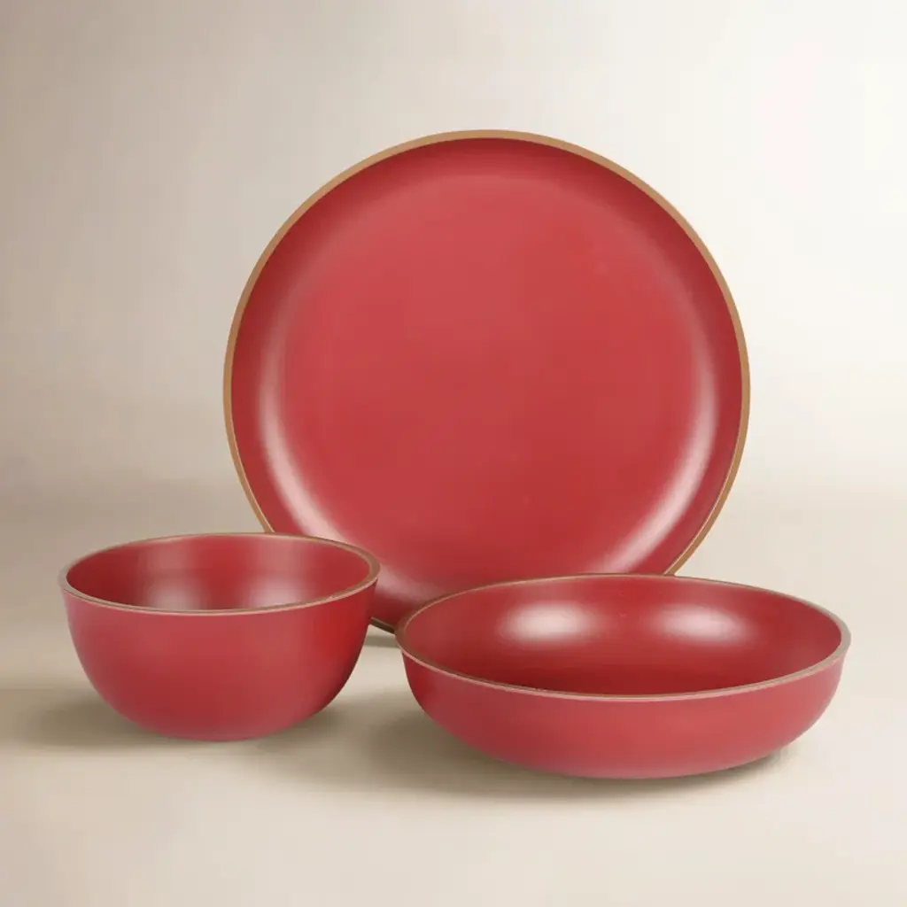 Bloomhouse Palermo Sun 16 Piece Double Bowl Stoneware Reactive Glaze Plates And Bowls Dinnerware Set - Paprika Red