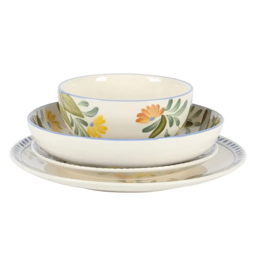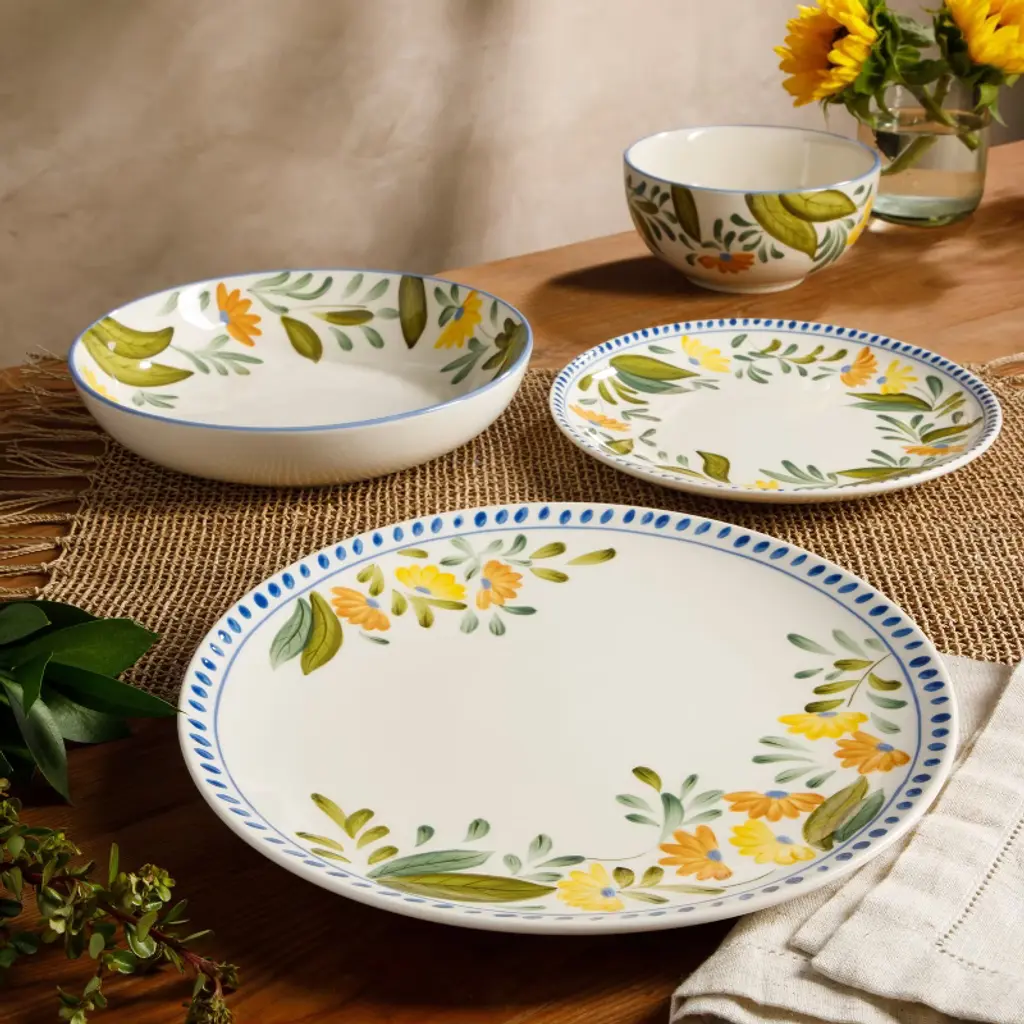 Bloomhouse Posy Blossom 16 Piece Double Bowl Hand Painted Stoneware Plates And Bowls Floral Dinnerware Set