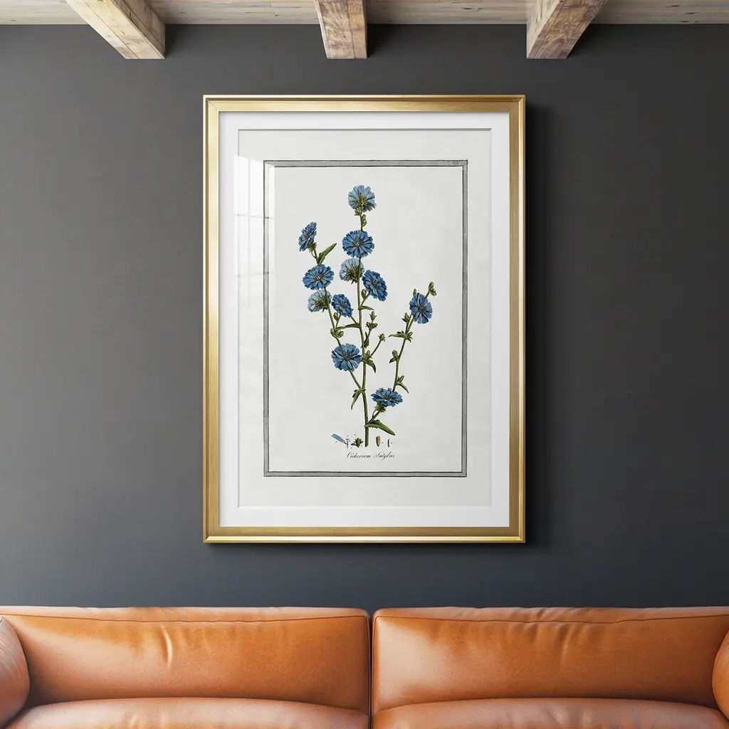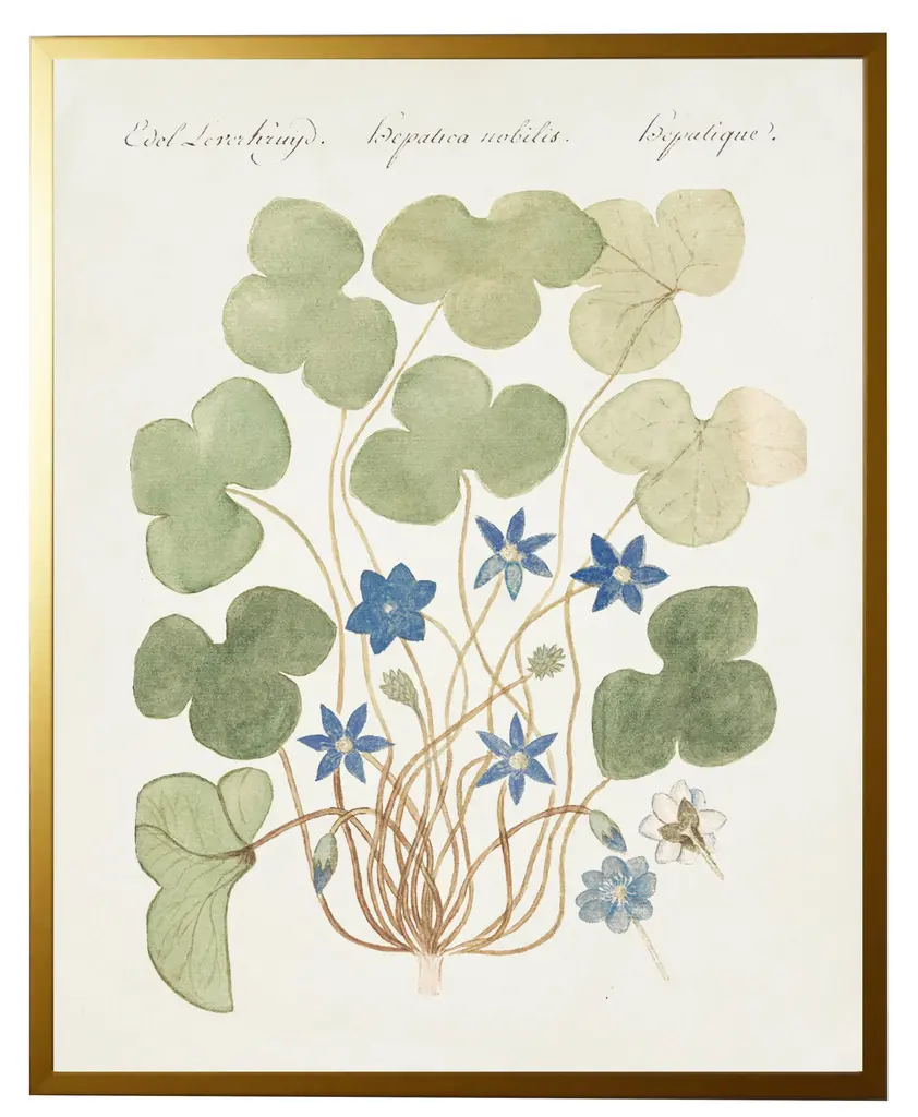 Art Print: Vintage Blue Anemone Bookplate Print in Gold Shadowbox Dimensions: 23" x 29"