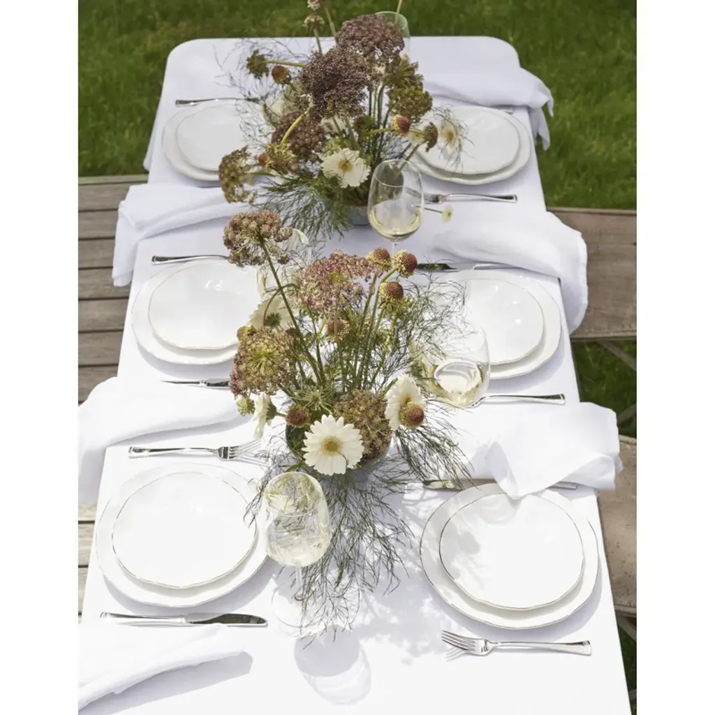 Get everything you need with the Blue Bay 12-piece dinnerware set in creamy white. Mix this set with your current Blue Bay collection or match with your dinnerware favorites! This set includes dinner plates, dessert plates and bowls, so that you can serve everything from the main course to after-dinner treats. This sweetly simple set features a thin gold rim on each piece for a unique accent and it's both dishwasher and microwave safe!