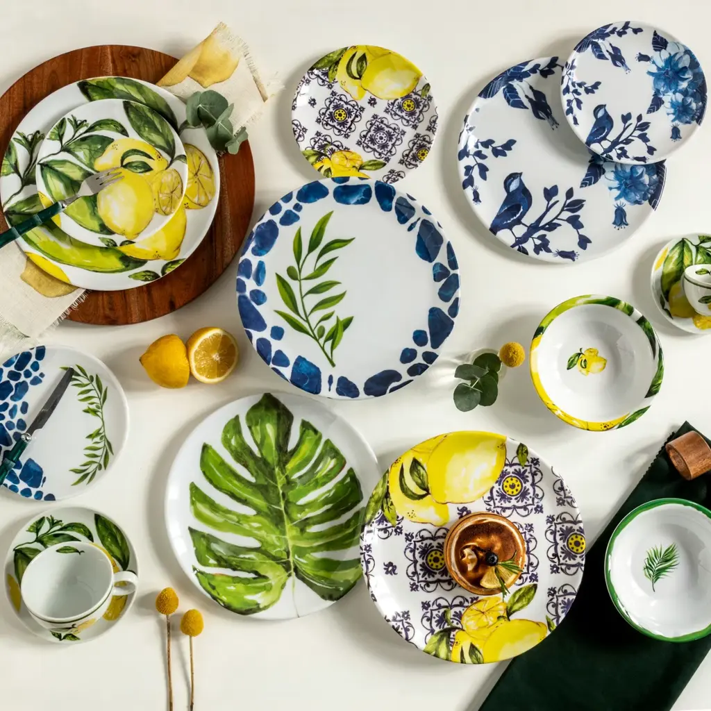"The contemporary patterns of the unique collection are painted by local artists and produced in limited quantities.You may use these decorative melamine plates as a dessert or appetizer plate on your tables."