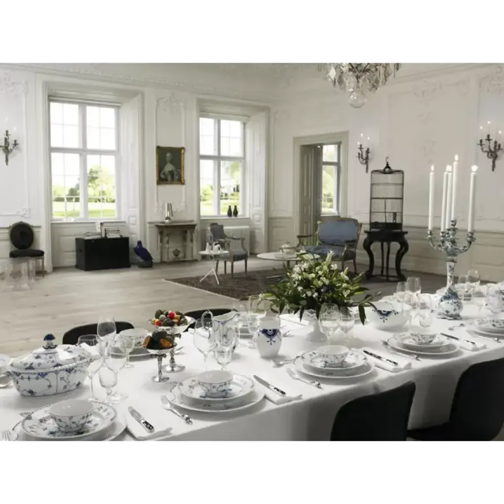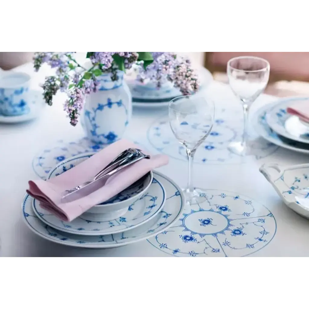 Royal Copenhagen's Blue Fluted Plain dinnerware is eternally classic. With its graceful decoration, it's versatile enough to mix and match with many other dinnerware patterns. It can be used every day as the basis for a unique collection. Designed by Arnold Krog. Five piece place setting includes dinner plate, salad plate, bread & butter plate, teacup and saucer. Royal Copenhagen is a world famous brand producing exclusive, high-quality porcelain dinnerware, figurines, home decor items and collectibles that delight collectors and new generations of customers. Originally owned by the Danish Royal Family, they produced fine porcelain for the Queen of Denmark. In the trademark Danish colors of blue and white, Royal Copenhagen's designs have been handpainted and manufactured by ancient methods refined since 1775. They are well known for their Flora Danica and Blue Fluted collections, which are but part of a line of 135 dinnerware patterns.