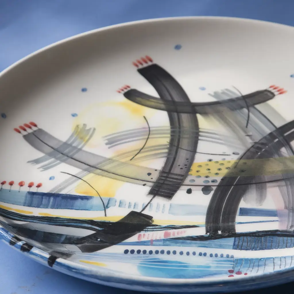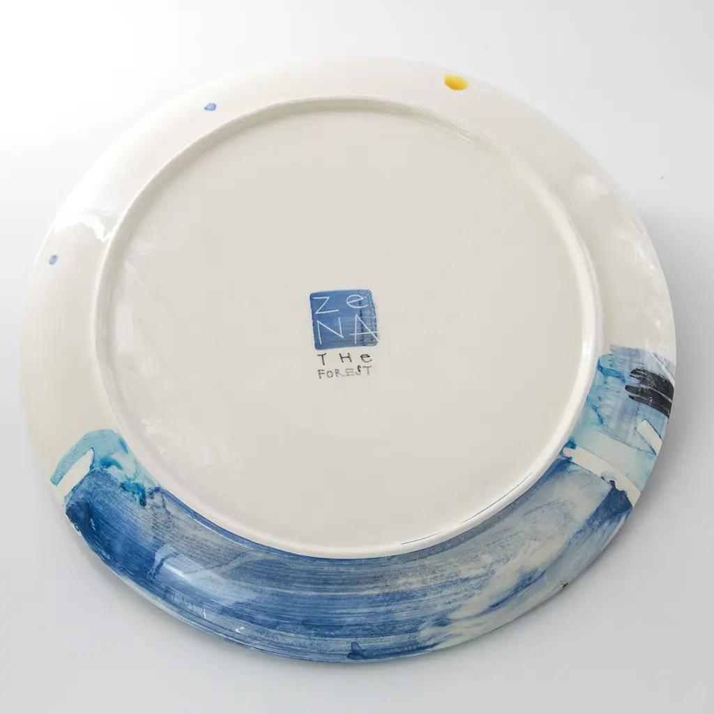 The Blue forest plate is part of the "Divertissement" collection. This big plate is like an enourmous canvas in which bright colors and geometric shapes come together in one unique composition. Image shown above is Indicative only, design may differ from the picture shown because hand made painted. This piece is available for customization for an extra fee. Please contact the Concierge for further information and options.