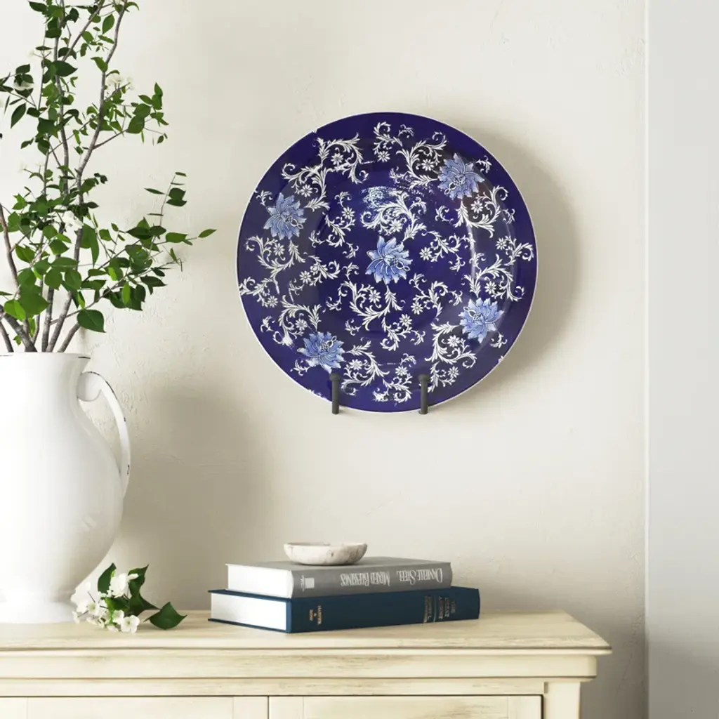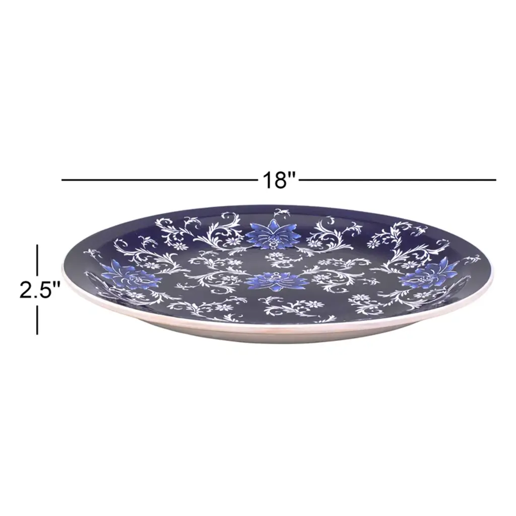 Blue Garden Lotus X-Large Decorative Accent Platter With Stand