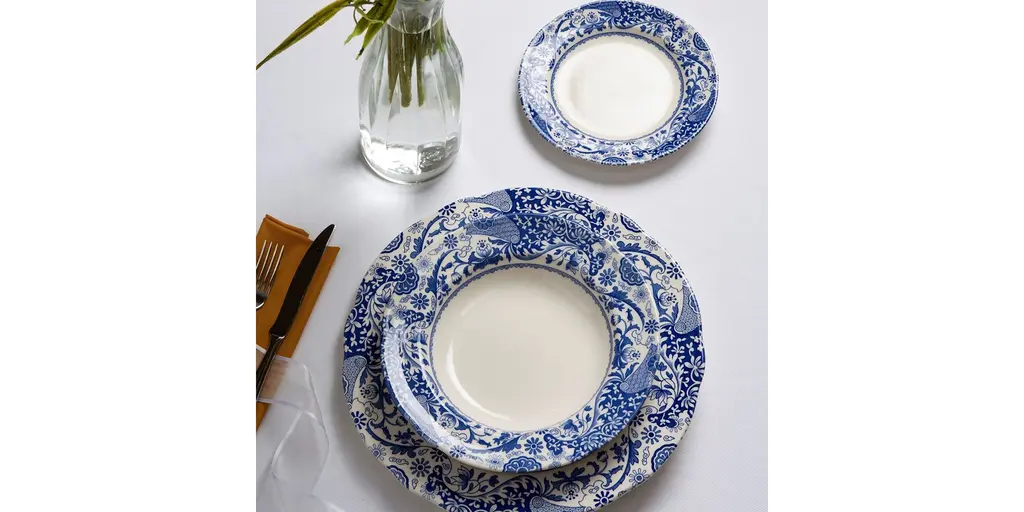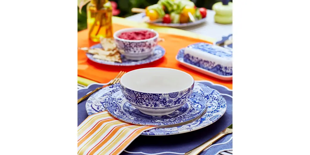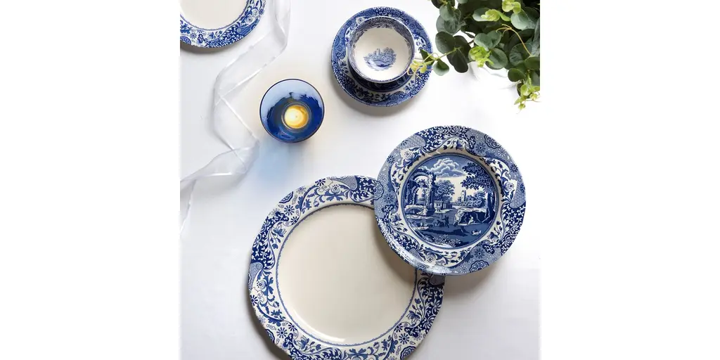 A light, youthful approach to a traditional pattern, Spode's Blue Italian Brocato Dinner Collection updates a classic motif with a simple white center and vibrant blue border. The sleek earthenware pieces are dishwasher and microwave safe for modern ease of use.